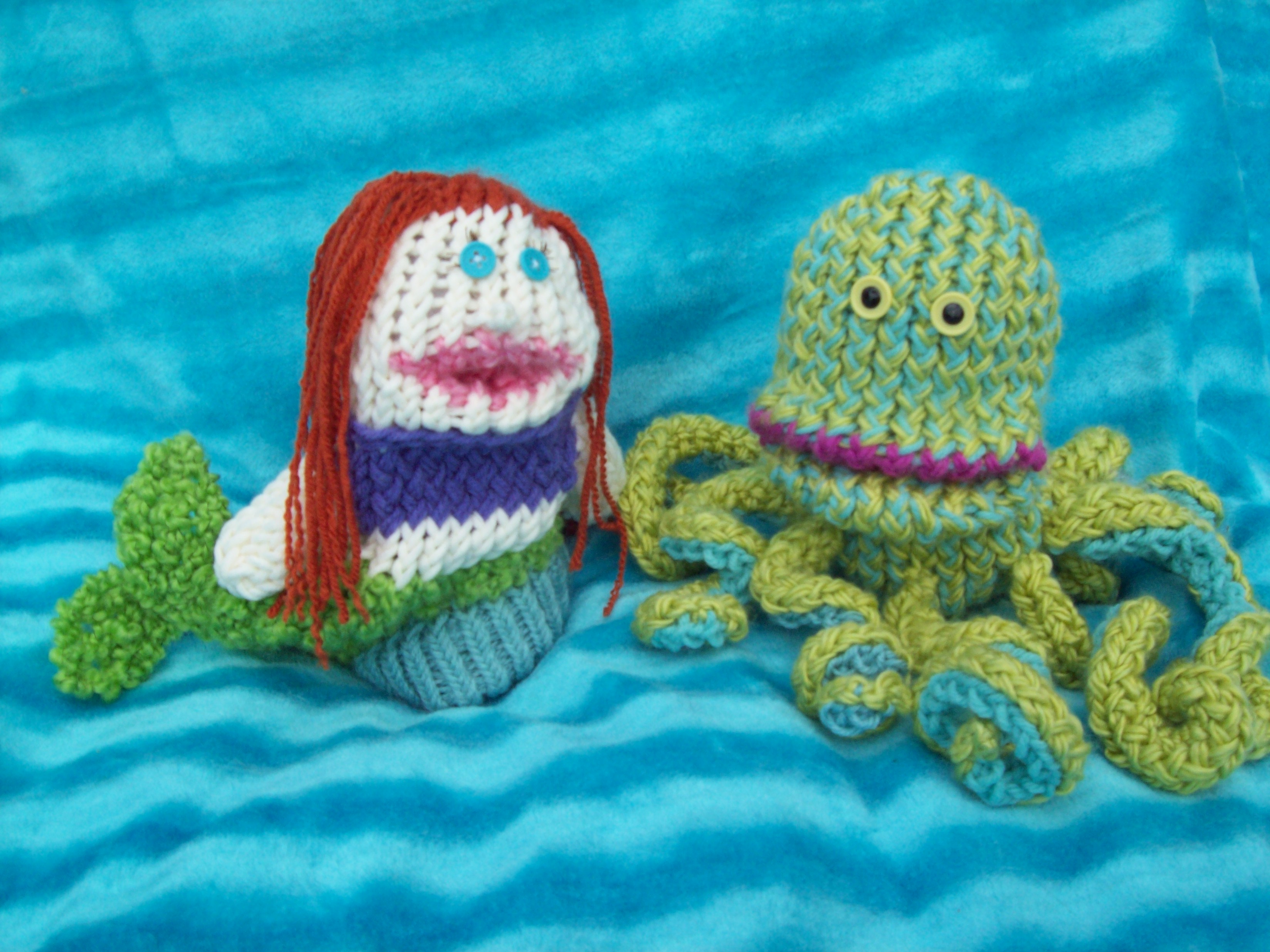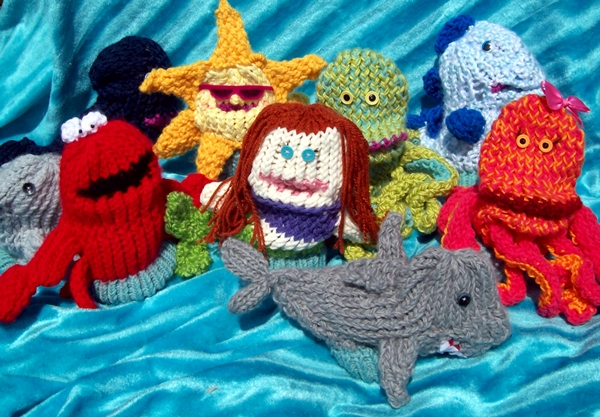 This 9 piece set of hand puppets includes a shark, dolphin, crab, whale, fish, summer sun, mermaid and boy and girl octopus puppets.