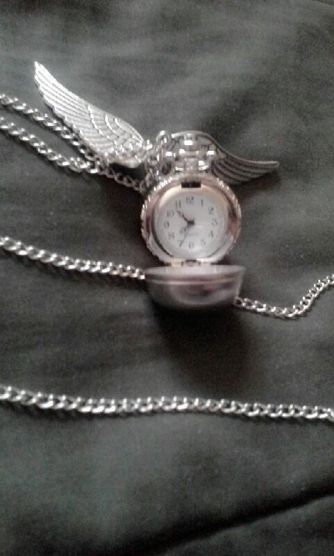 This lovely piece is reminiscent of the Snitch in Harry Potter. It's a lovely silver color on a long chain necklace and once opened reveals a watch! Great buy for anyone who loves a little something different.