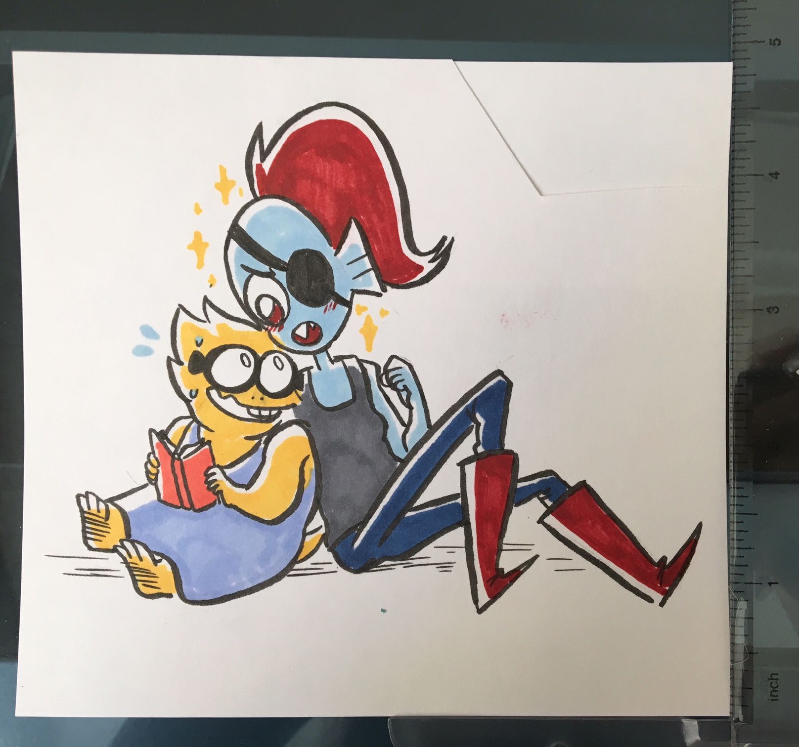 Original artwork of Undyne and Alphys. 4.75 x 5.25, ink and marker on 110lb cardstock