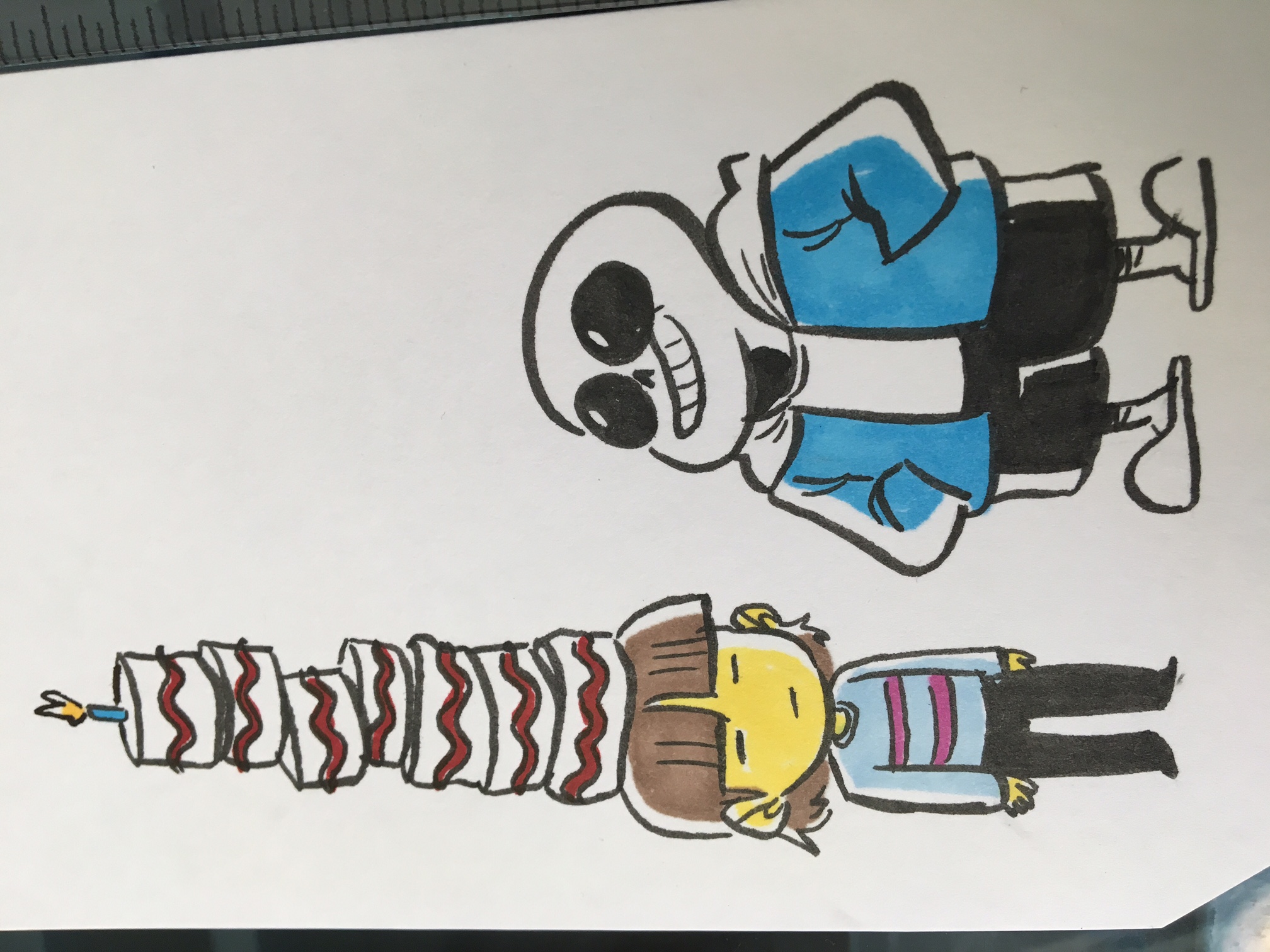 original art of Frisk and Sans from Undertale, drawn for the 1 year anniversary. 3.25 x 5", ink and marker on 110lb cardstock