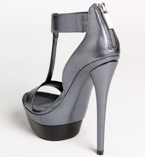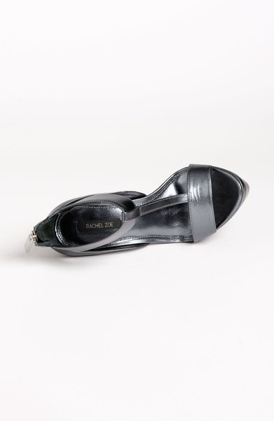 Elevate your look and your height in the sky-high Rachel Zoe Sandal. Leather. Open toe. T-strap upper. Zipper at back of heel. 5 3/4" covered heel with 1 3/4" platform; 4" equivalent. Leather sole. Size 10. Pre owned with only signs of wear faint scuff on heel from storage as well as discoloration on bottom where sale sticker was located.