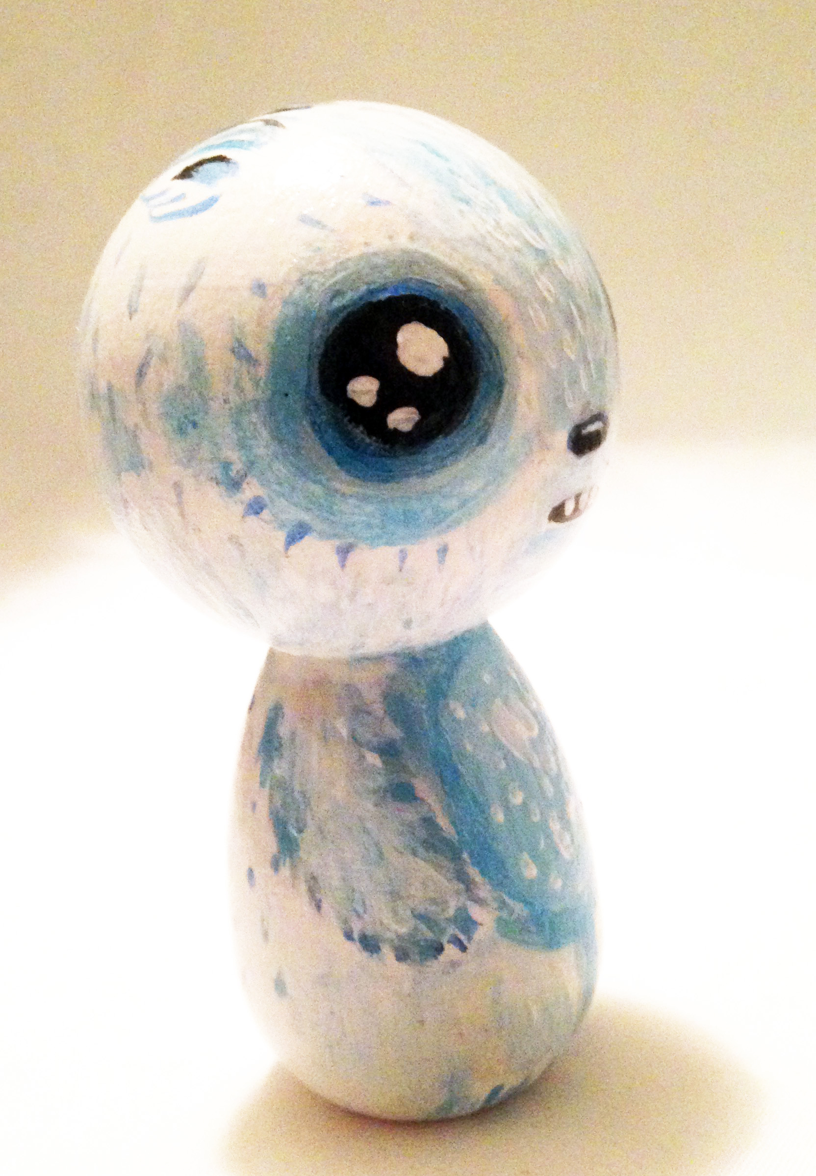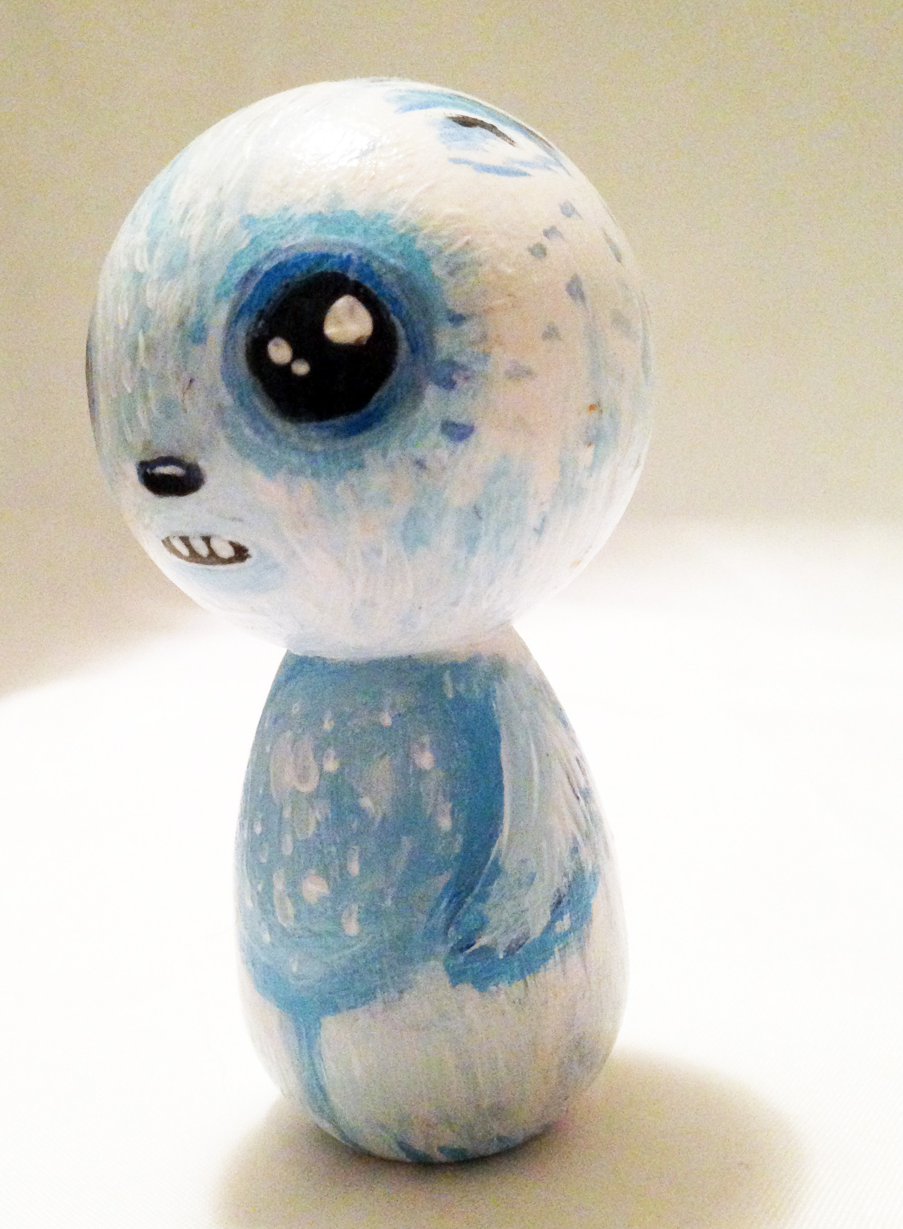 Cute little Yeti Kokeshi doll - a perfect toy for a child over 3 or a wonderful decoration for your home. He prefers to go to a home with lots of hot cocoa!!! Hand painted with acrylics and sealed with a protective glaze. 2 7/8 inches x 1 1/2 inches This is my largest Kokeshi doll