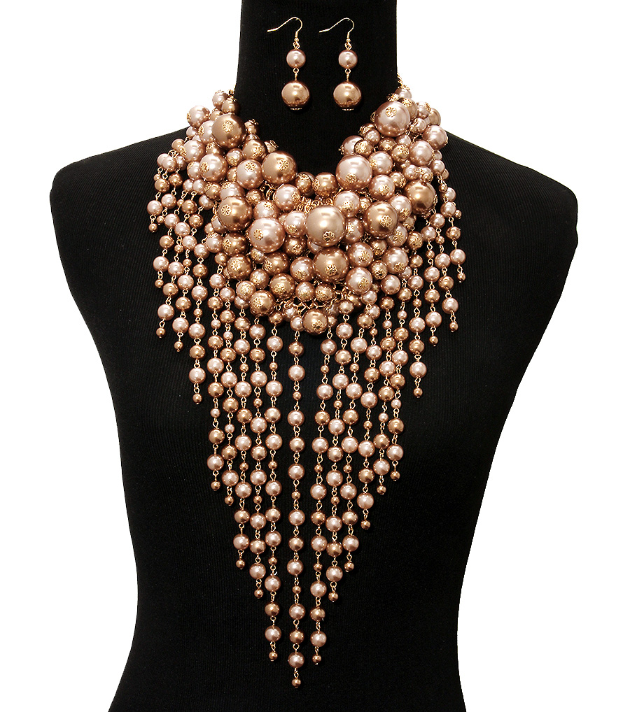 Oversized Pearl Necklace Set Available in Multiple colors.