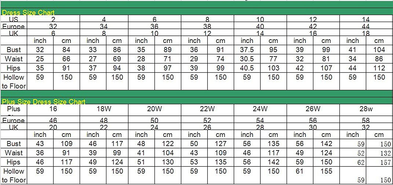 Please measure the size in the right way, then choose size chart according to our size chart. If you need custom made, please just provide us your detailed size as follows: Details size need as follows: _________________________inches/cm Full Bust: _________________________inches/cm Waist: _________________________inches/cm Hips: _________________________inches/cm Hollow to floor(with high heel): _________________________inches/cm Shoulder to shoulder: _________________________inches/cm Your height(with high heel): _________________________inches/cm Shoulder to shoulder: _________________________inches/cm Bicep: _________________________inches/cm Sleeve length: _________________________inches/cm Back: Zipper or Lace up ?(Lace up recommend) Color Number: NO. ____ >Return policy and process< 1. If you find the dress is in wrong color or measurements, please send us clear pictures within 7 working days since you receive the dress. You can return and refund or change the dress after our confirmation; 2. If the dress is obviously dissimilar with the original picture, please send us clear pictures within 3 working days since you receive the dress. You can return and refund or change the dress after our confirmation; 3. If there is obvious quality problem with the dress, such as large dirt, broken or defects surface, please send us clear pictures within 3 working days since you receive the dress. You can return and refund or change the dress after our confirmation; 4. We offer free repair on your custom made dress even if the repair is needed because you offered us the wrong measurements! But you need to pay for the shipping cost