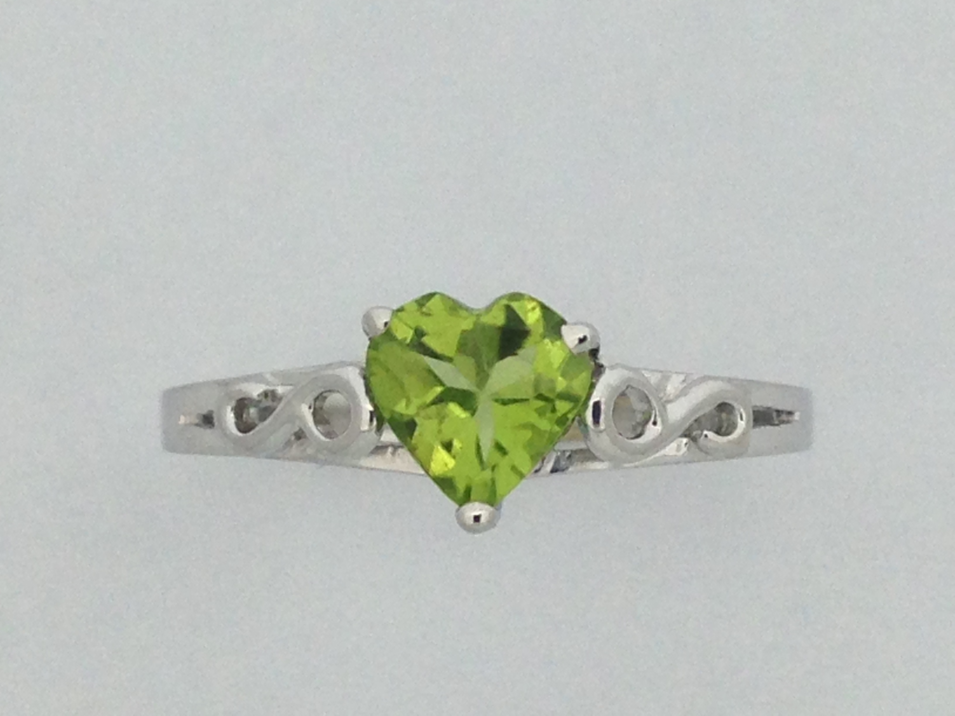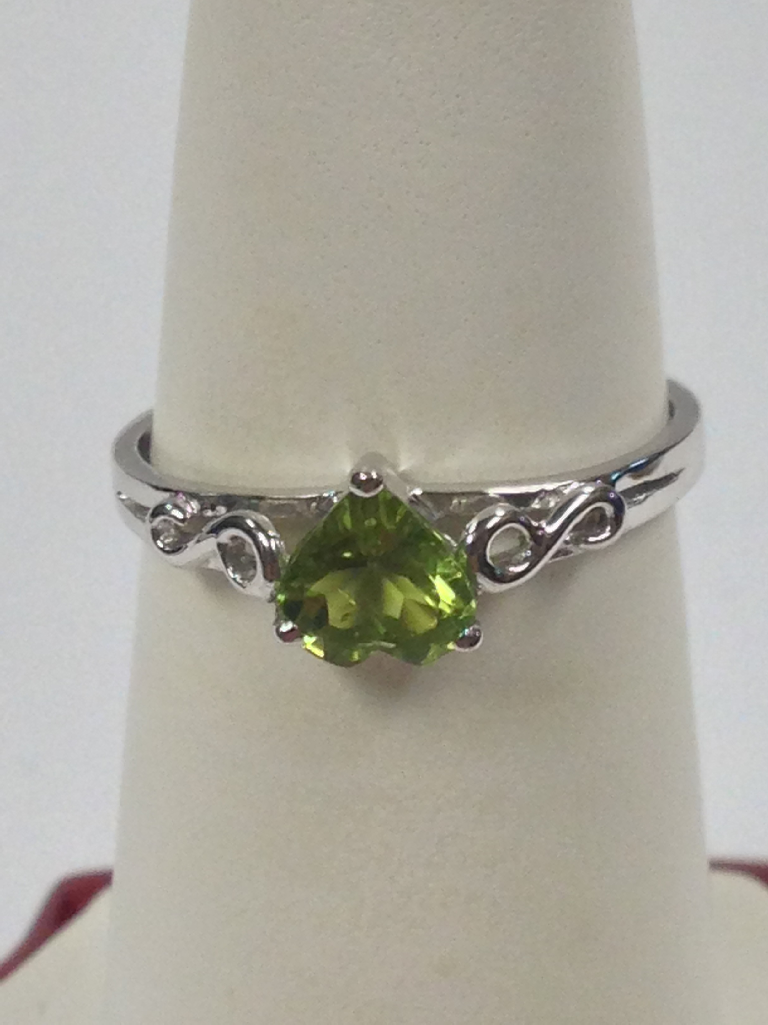 925 Sterling Silver Ring Natural Peridot is 5 mm Heart Shape Ring is Available in Sizes: 6,6.5 and 7 WITH GIFT BOX