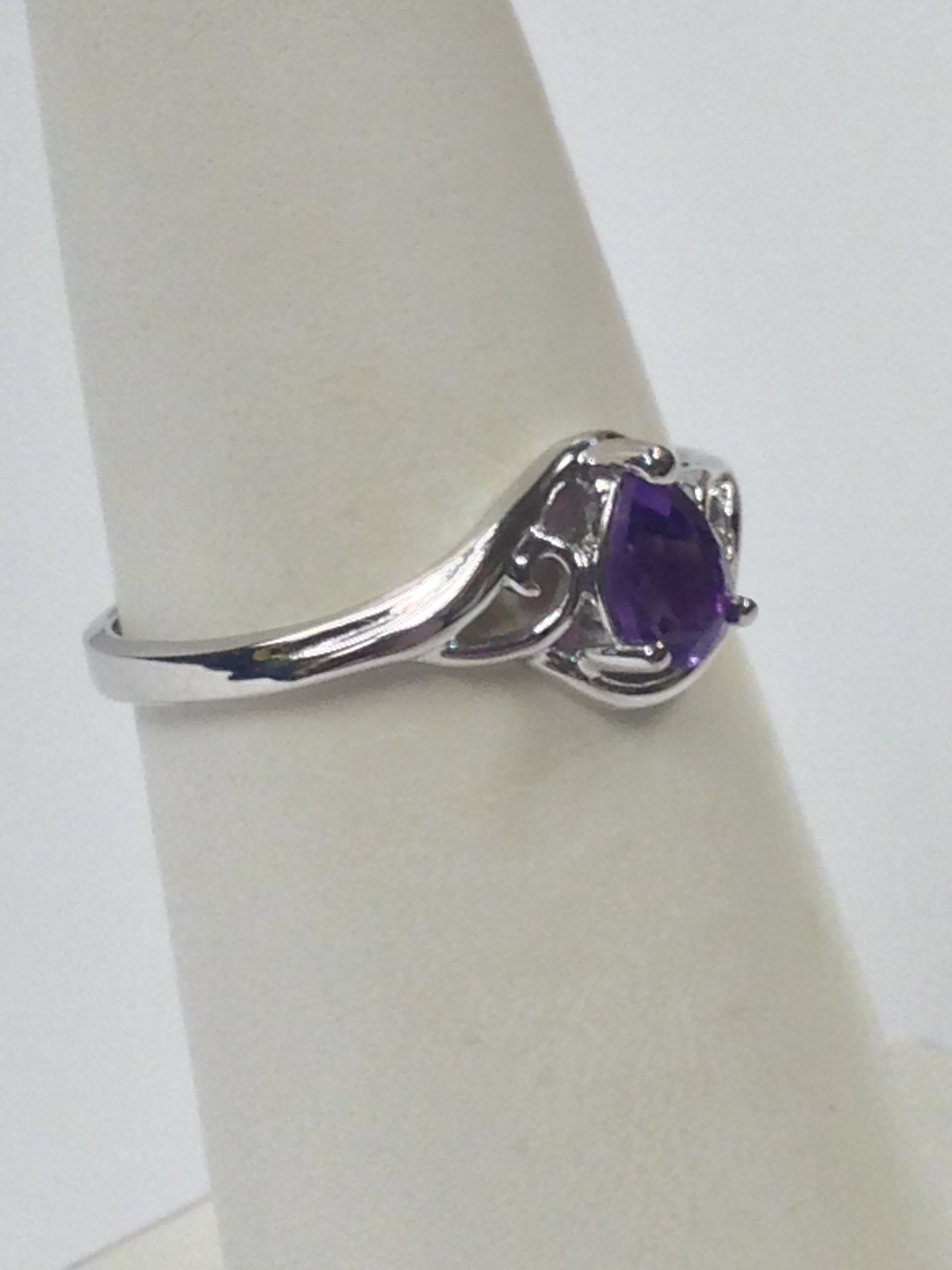 925 Sterling Silver Ring Natural Amethyst is 6x4 mm Pear Shape Ring is Available in Sizes: 6,6.5 and 7 WITH GIFT BOX