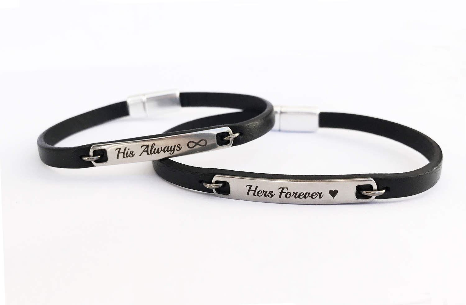 2. Please write desired date/word/phrase etc and color of the leather for both bracelets in the "note to seller" at checkout.