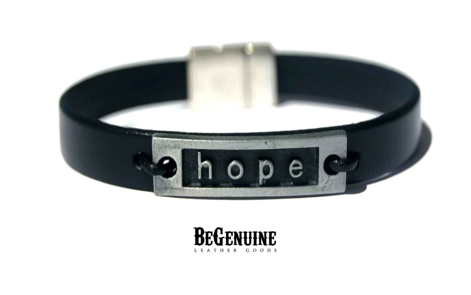 Mens black leather bracelet with HOPE charm and strong hypoallergenic magnetic clasps. Leather is 0,5in (10mm) wide. Inspire your loved ones to never lose hope! This simple black leather bracelet is super easy to wear! It goes with casual and dressy outfits. This is not only a practical but a beautiful way of carrying a piece of inspiration with you. Perfect gift item! BeGenuine is an European brand known for it's quality and simple, clean design. With over 3000 unique sales just on Etsy it's a brand you can trust. (For additional info on sizing and shipping read "shipping and policies") For SUPER special offers subscribe to our news at http://eepurl.com/bt-evb https://www.etsy.com/listing/261065634/men-leather-bracelet-christian-leather?ref=shop_home_active_1 https://www.etsy.com/listing/259550303/mega-sale-christian-couples-bracelet?ref=shop_home_active_6 https://www.etsy.com/listing/217404381/mega-sale-men-leather-bracelet-christian?ref=shop_home_active_1 ❤ Shop authentic ❤ Shop BeGenuine ❤i
