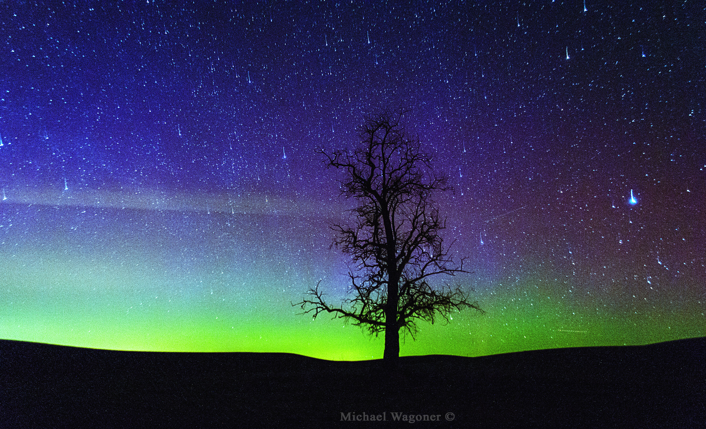 In the words of Chicken Little: The sky is falling! The sky is falling! I had a lot of fun taking pictures of the northern lights, and was pretty amazed that despite having my exposure time a tad bit too high, I got a really cool shot of the partial star trails, giving the appearance of falling skies.