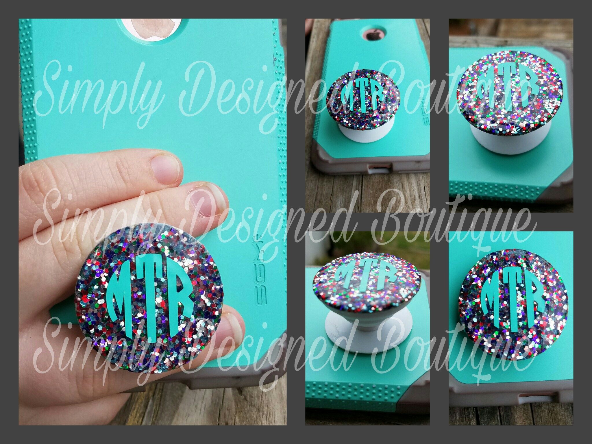 Glitter Phone Holder, Monogrammed Phone Socket, Pop Up Phone Accessory-1