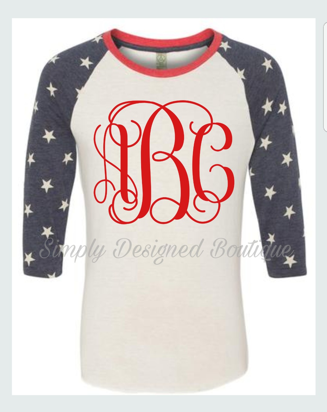 Let Freedom Ring! Celebrate Independence Day with this festive raglan. This adorable raglan can be designed with any quote, saying and monogram! Price is for one side design only. Add any personalization info, such as name, monogram info as well as vinyl color in the notes at checkout. Failure to include this, will result in delay of your order and/or item will be shipped without personalization. Monogram is: first name initial, last name initial, middle name initial *Sally Mae Brown = SBM Once items are ready, seller ships most things priority which has a 1-3 day delivery time. Some items and personalization services may require extra time before item(s) actually ship. Please understand that shipping times may not always be 1-3 days from ordering. Please contact seller with any questions.