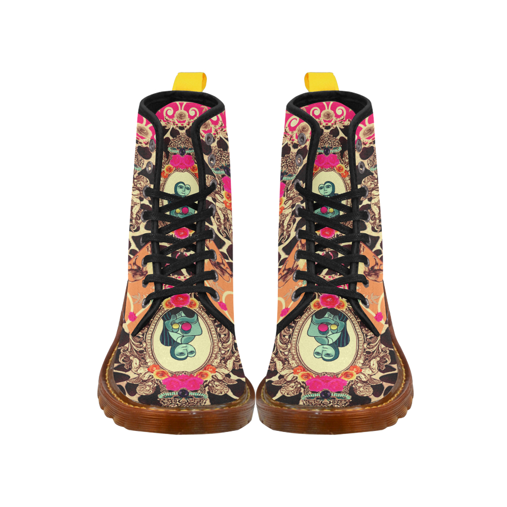 Funky Picasso Style with Giraffe Print & Flowers, Orange & Gold Canvas Combat Boots