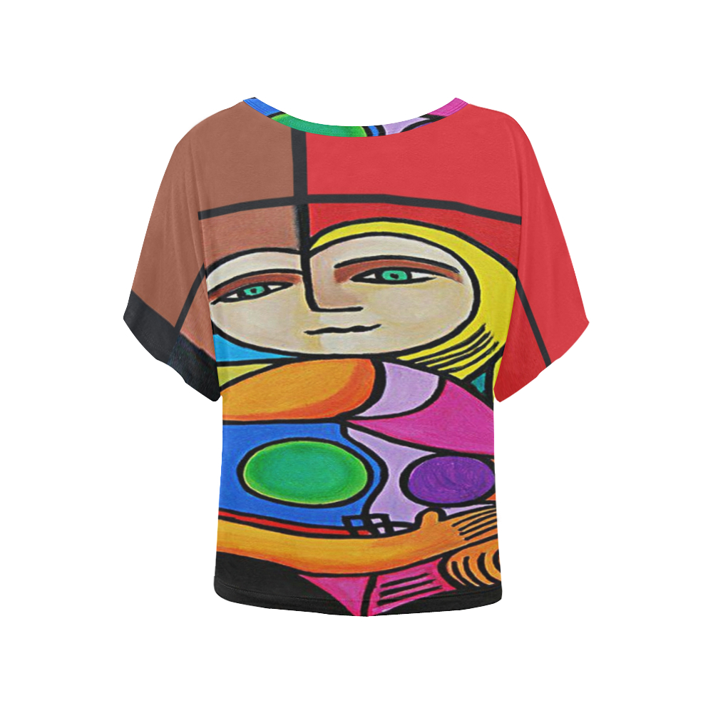 Funky Picasso Woman Sitting Women's Batwing Sleeve Top