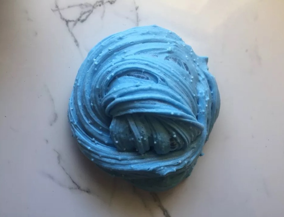 This is blue fluffy slime with micro foam beads! Has a very nice texture to it but is not scented at the moment!