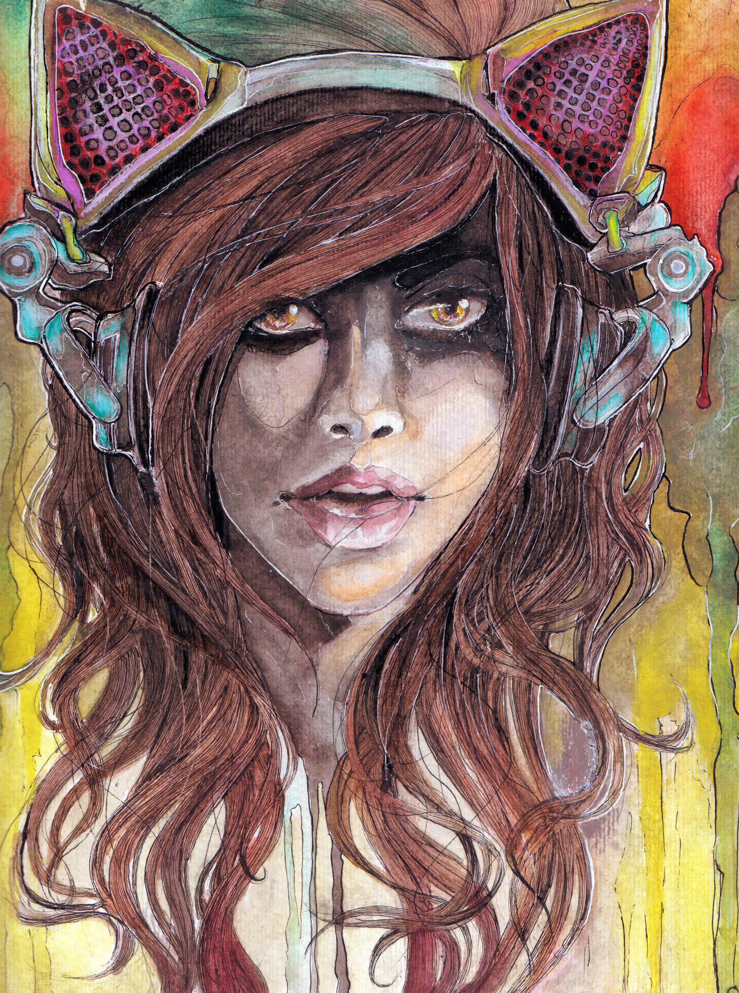 8x10 Signed Print of this portrait practice headphone kitty lady female girl. HMM MMM Printed on high quality Premium Gloss Photo paper. super sexy x)