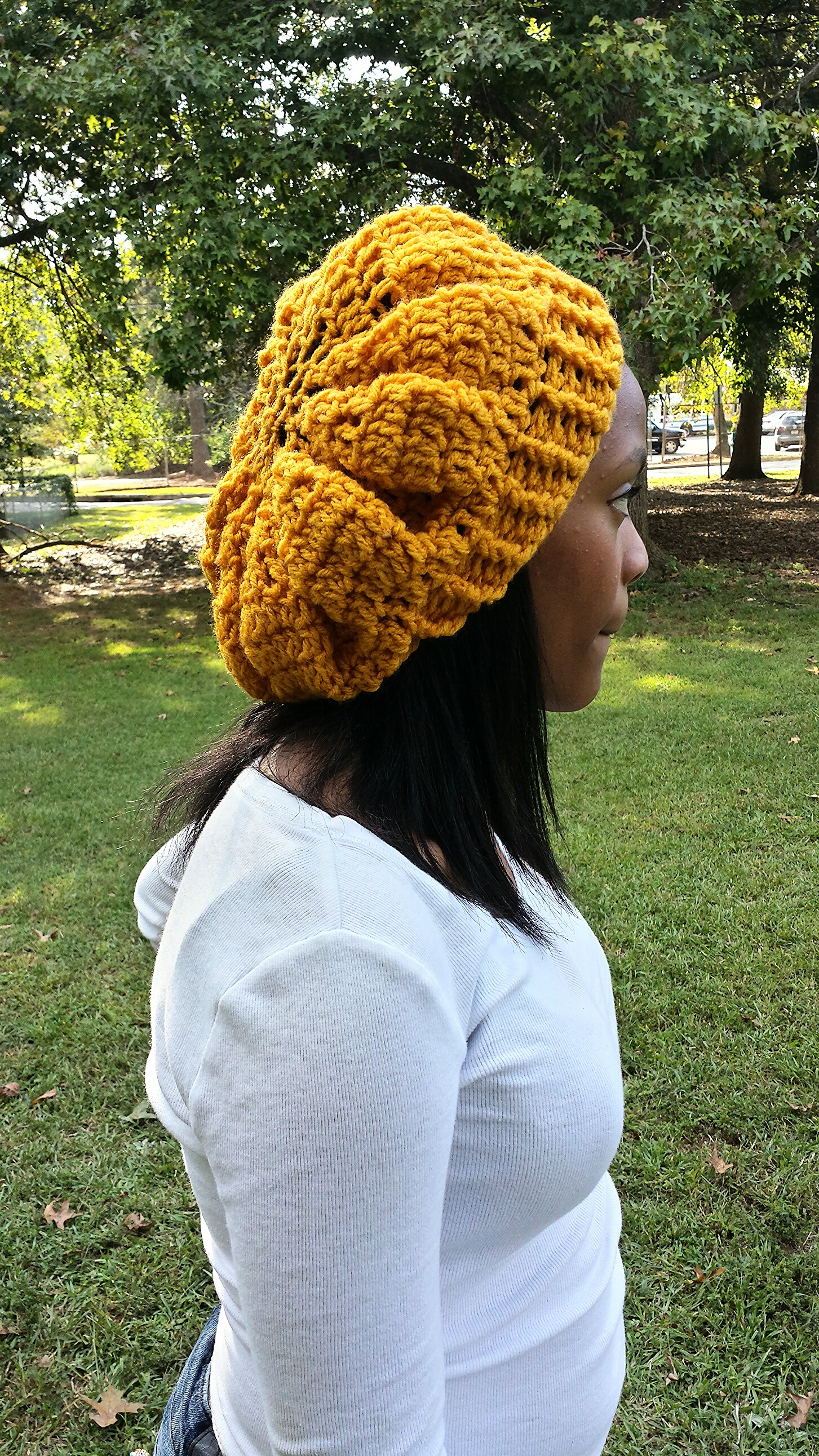 Chunky slouchy gold colored beret made with 100% acrylic. This chic beret will make a great gift or a must have to your accessory collection. Berets can be customized in any color desired. Choose "custom" so slouchy beret and note color preference.