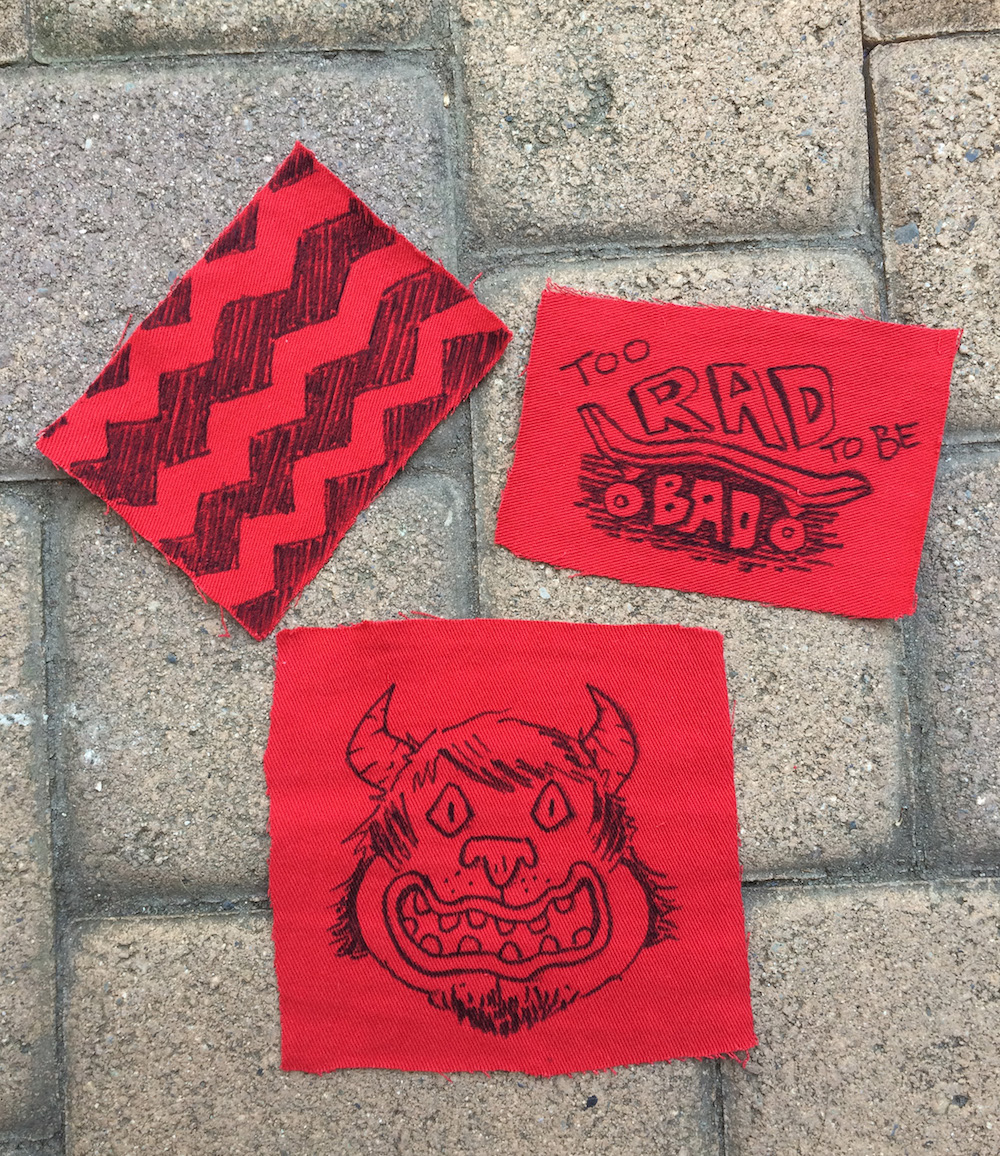 Sharpie on red denim patches! Squares/Rectangies: 4 - 5.5" Diamonds: 4" Triangles: 3"