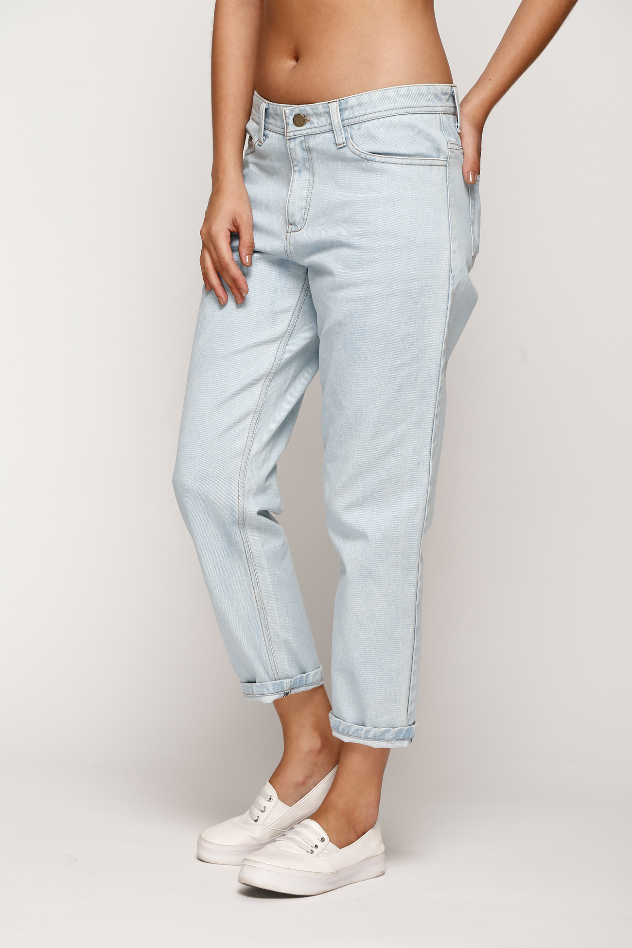 PRODUCT DETAILS - Boy cut - ankle-length jeans in washed denim - front and back pocket - zip and button - Model's height : 175 cm - Model wears size M COMPOSITION - 100% Cotton CARE - Machine wash cold with similar colors - Do not bleach - Tumble dry low, remove promptly - Warm iron if needed Please check the size guide on the last image