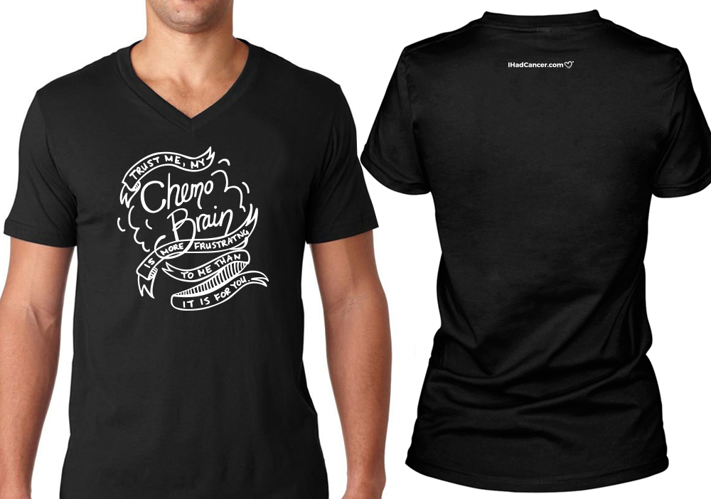 Tired of explaining your chemo brain to your loved ones? This shirt says it all. About the tees: Next Level Apparel / Black with White Wording / 100% Cotton / Machine Wash Cold / Tumble Dry Low / Do Not Iron Decoration
