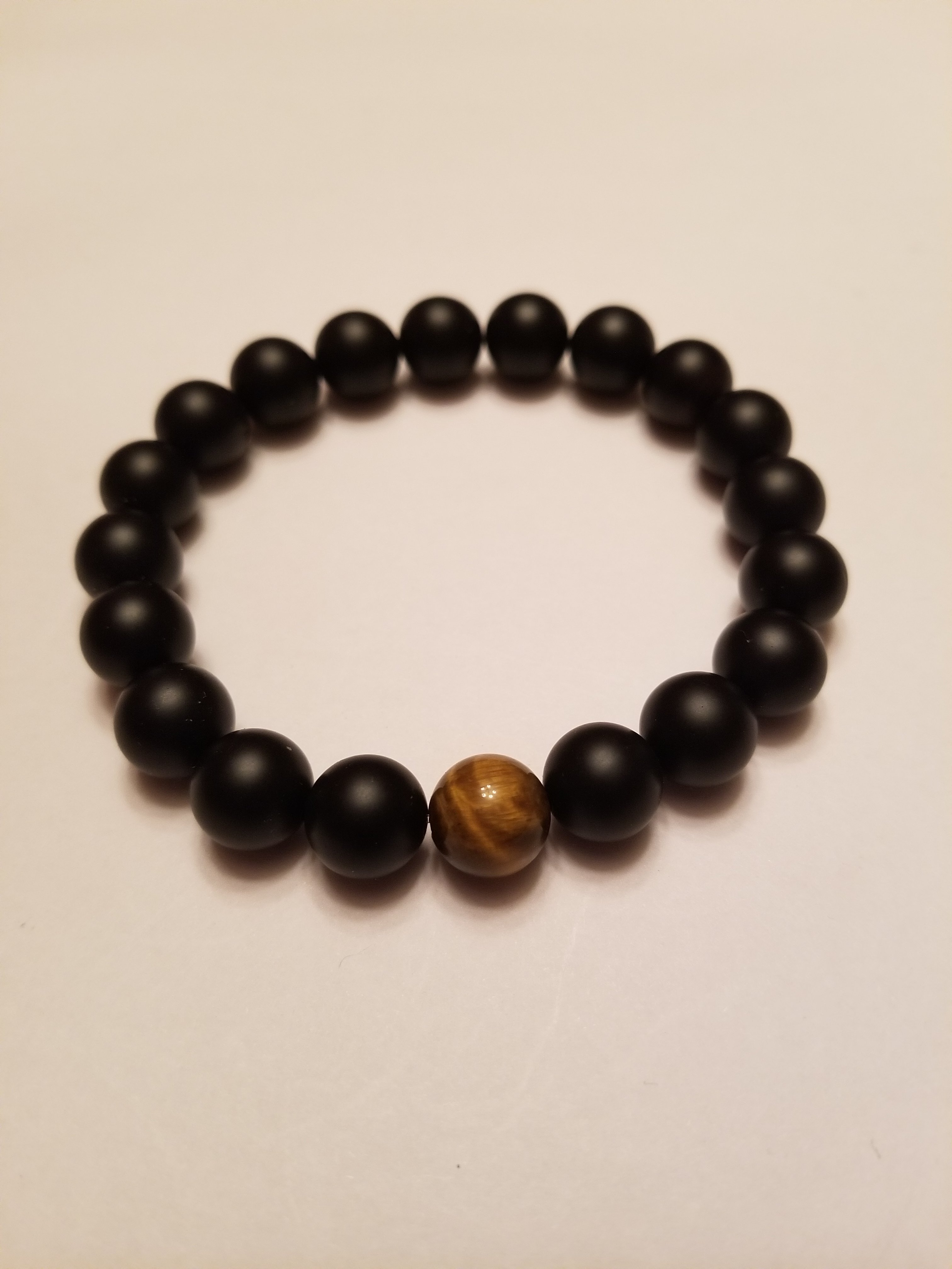 Matte black beads accented with a natural tigers eye in order to bring harmony and balance to you each time you wear it.