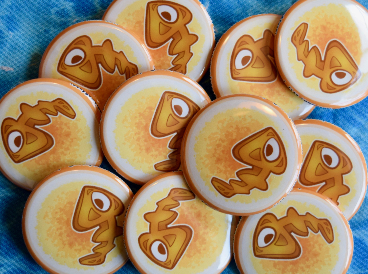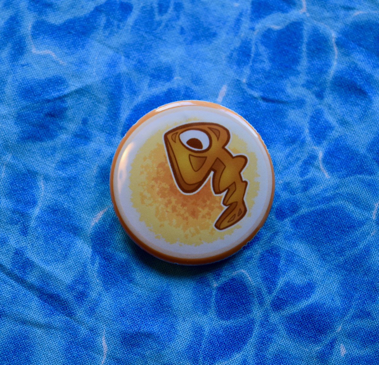 You only need one more golden egg to reach your quota... there's 10 seconds left... you see the egg basket... when then... MAWS. Be prepared before your Salmon Run shift with your very own Golden Egg button! These 1.5" pinback buttons are printed vibrantly and individually made in house with care. This button was funded by Patreon! Become a Lucky Charms Club tier subscriber to receive a monthly button, in addition to a sticker sheet, vinyl transfer sticker, and much more! http://www.patreon.com/xeny