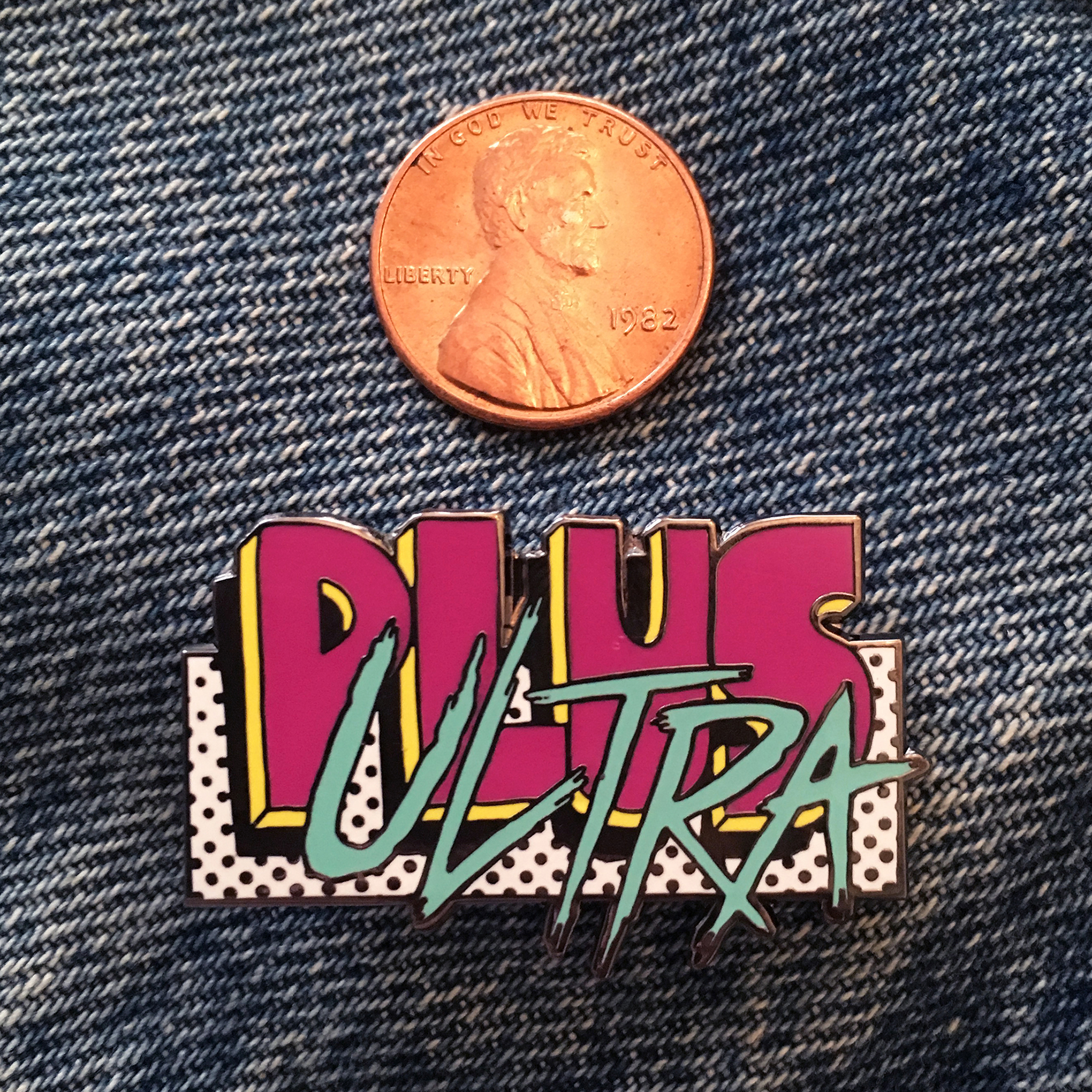 Show off your 80s flair and school spirit with this hard enamel pin! These pins are black plated, 1.5 inches/38 millimeters wide and feature 2 black rubber clutches.