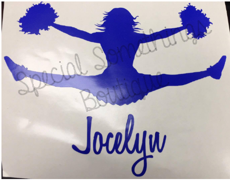 Custom cheerleader Car Decal with name approx 4"x6" Can be created in many different colors. Also available in other sports...Basketball, Soccer, football, and many more.