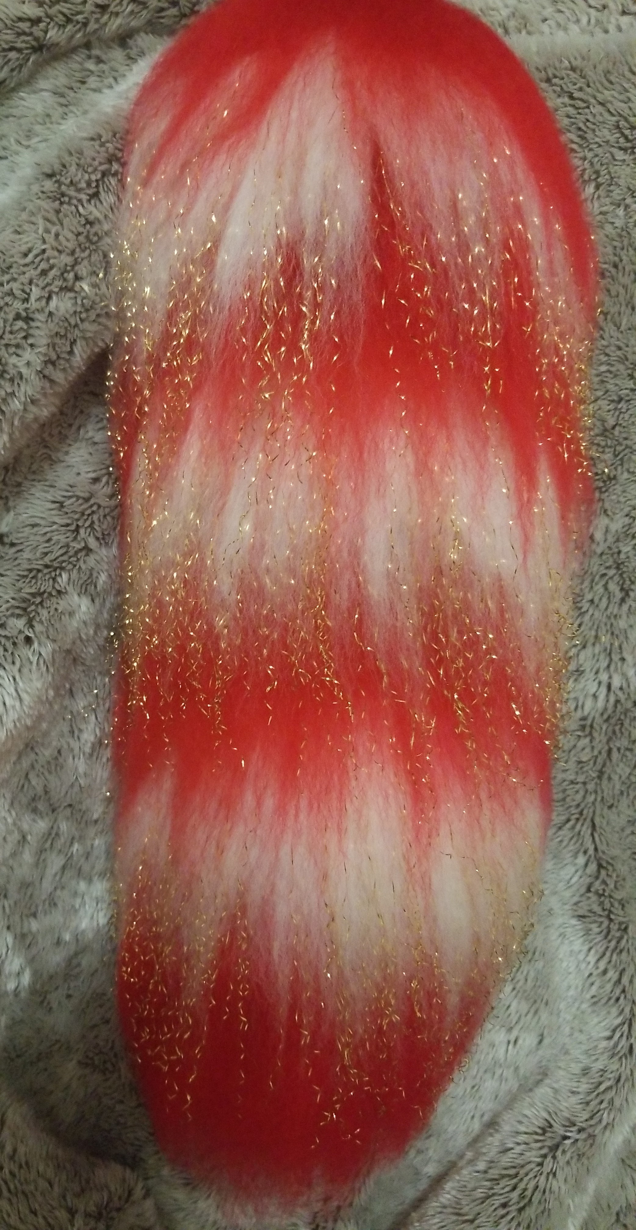Two tails measured at 22"-23" long, made using red and white yarn, one with gold tinsel added in the white sections. Both are scented with a Peppermint scent to match their sweet candy counter part. Both are perfect for the Holiday Season.