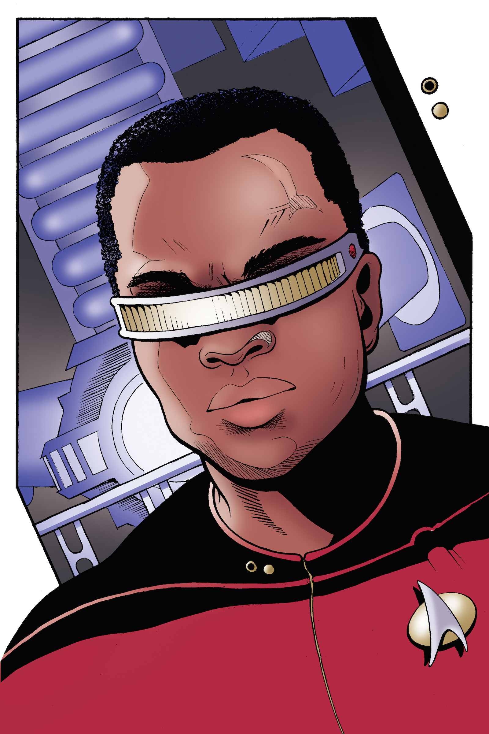 A small (4in x6in) full-color print featuring fanart of Geordi La Forge from Star Trek: The Next Generation. This is a museum quality, UV coated, giclee print.