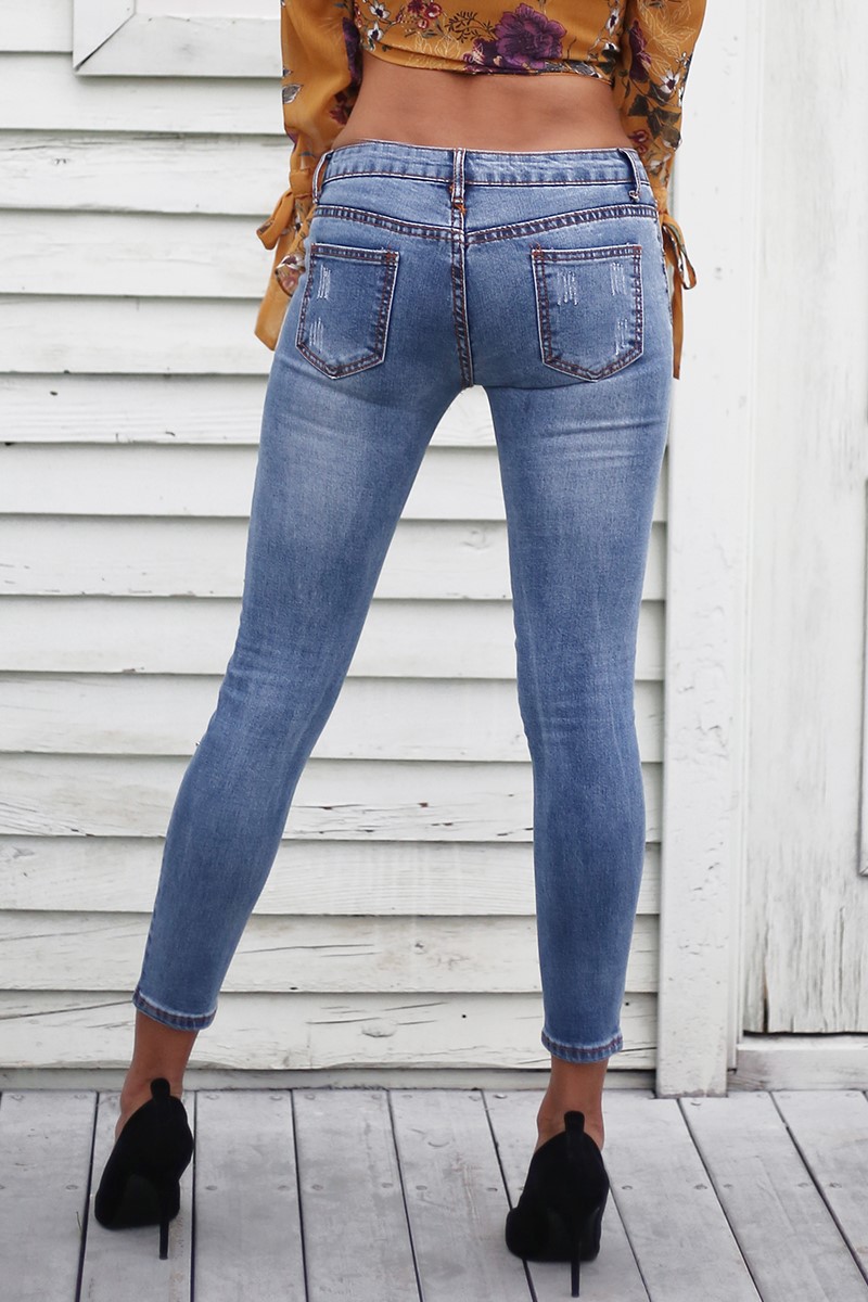 Streetwear Pearl Hole Casual Pocket Skinny Pencil Low Waist Jeans-1