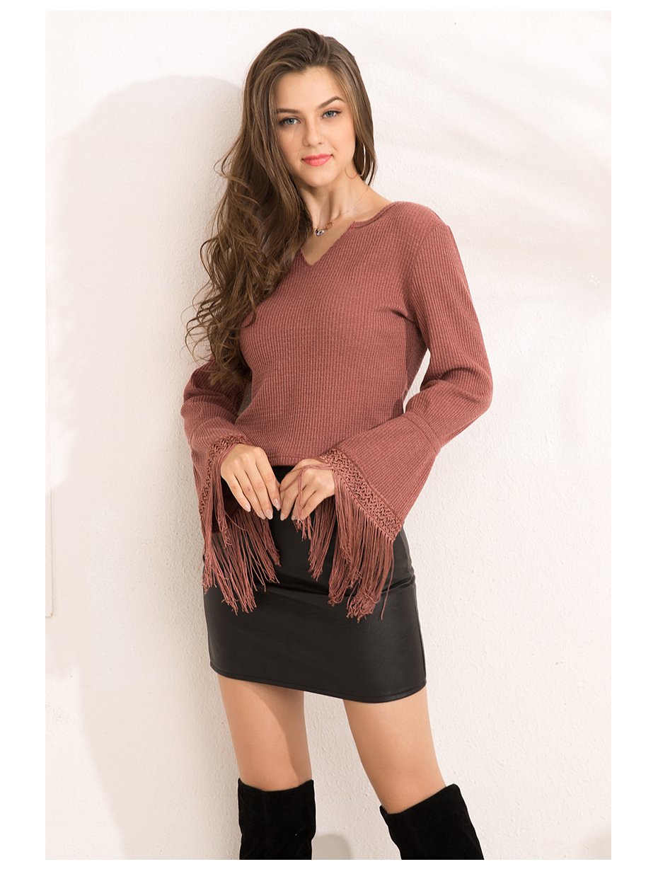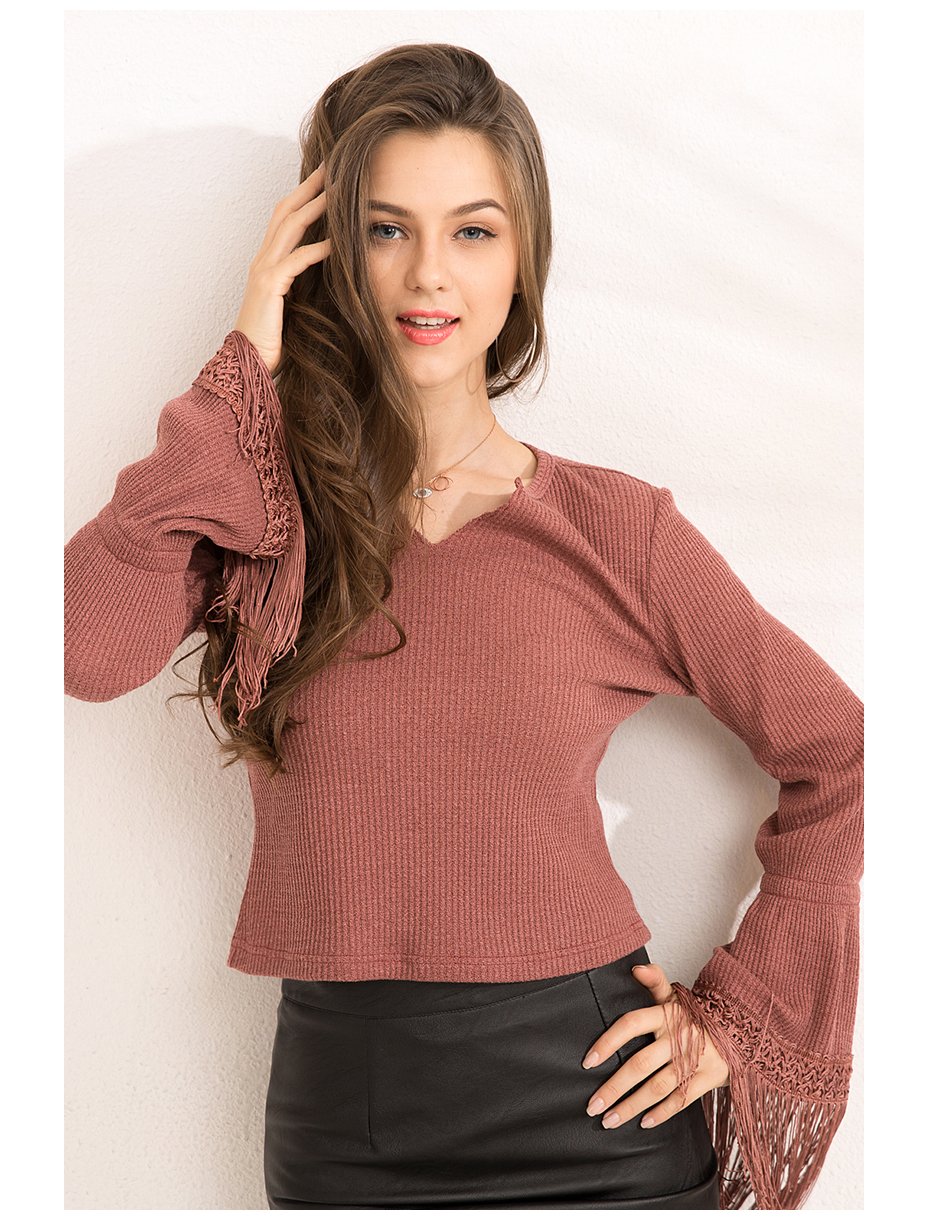 Collar: V-NeckSleeve Length(cm): FullDecoration: TasselMaterial: Cotton, SpandexFabric Type: KnittedSleeve Style: Lantern SleeveColor: RedSize: S/M/L/XLName: Women Sweatshirt/Tops For Women Published using Nembol