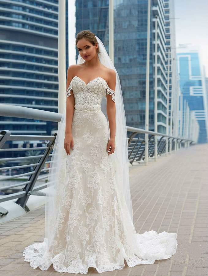 Glamorous Off-the-Shoulder Wedding Dress Sweetheart With Lace Mermaid Bridal Gowns-1