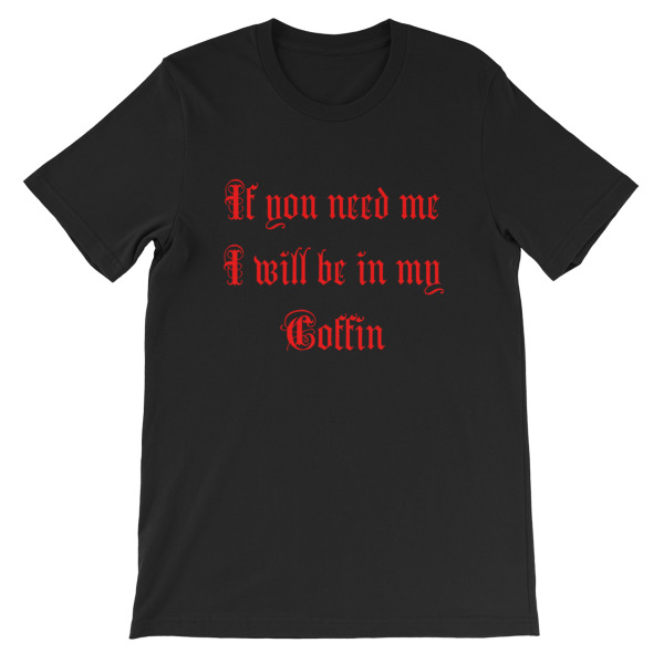 Having a day where you just wanna stay inside your coffin and shut out the world? Then this is the shirt for you! *colors may vary due to computer monitor settings. We resource our clothing, totebags and pillow cases etc. from print on demand zombies and as we all know they are super slow so please allow 5-10 business days for processing. Holiday orders may take longer. These items will be sent out separately from other products such as jewelry and some accessories. Turnaround time for these items are 7-12 business days and holiday orders may take longer. As each item is custom made when ordered, RETURNS, REFUNDS, EXCHANGES, CANCELLATIONS ARE NOT ACCEPTED at this time. Please keep in mind when ordering and use size chart for reference. Please contact me if there is any damage or defects and I will do my best to resolve the problem. • 100% combed and ring-spun cotton (heather colors contain polyester) • Fabric weight: 4.2 oz (142 g/m2) • Shoulder-to-shoulder taping • Side-seamed Model is wearing a size M. He's 6.2 feet (190 cm) tall, chest circumference 37.7" (96 cm), waist circumference 33.4" (85 cm).