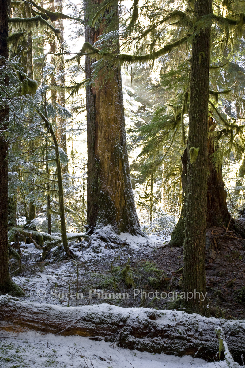 8x12 photograph. Cedar trees with a light dusting of snow. Printed on high quality glossy photo paper. Other sizes are available upon request. Watermark will not be on the final print.