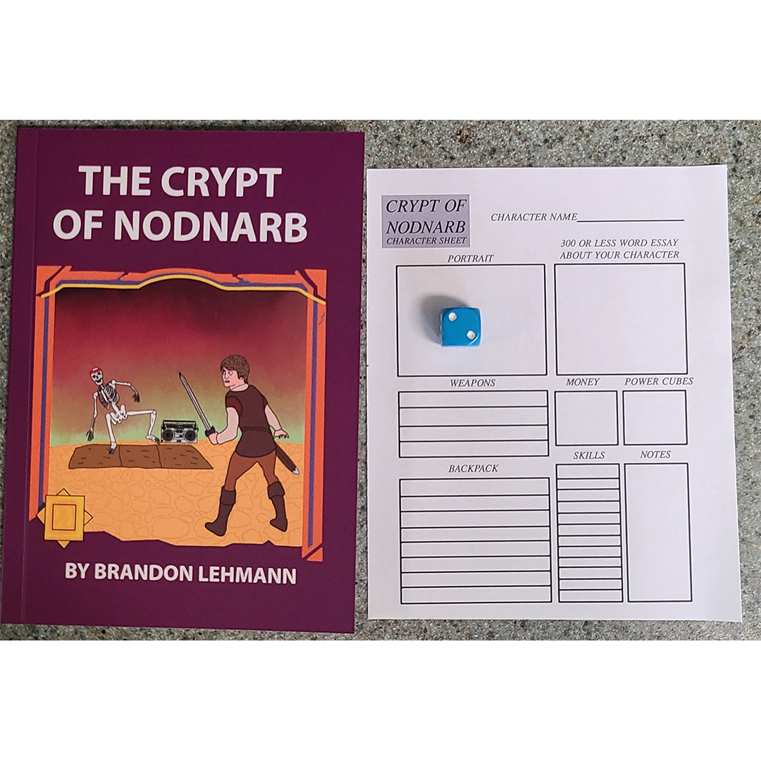 A hilarious 64 page perfect bound text based parody of role-playing choose your own adventure books from the 1990s. Comes with a character sheet and six sided dice in a ziplock bag. Everything you need to play!