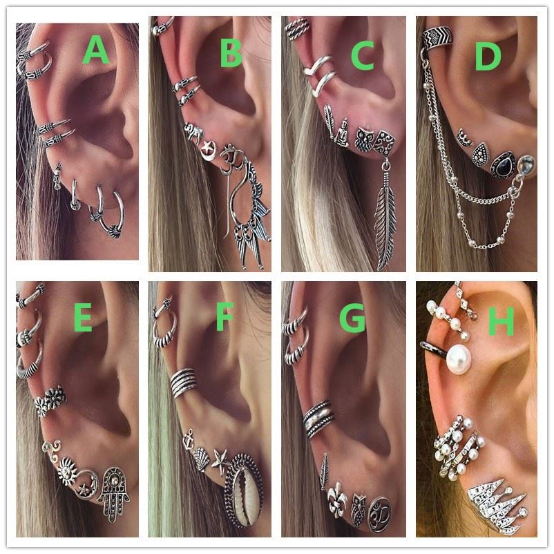 Bohemian Style Stud Earrings Set for Women Vintage Jewelry Ear Clips Chain-1