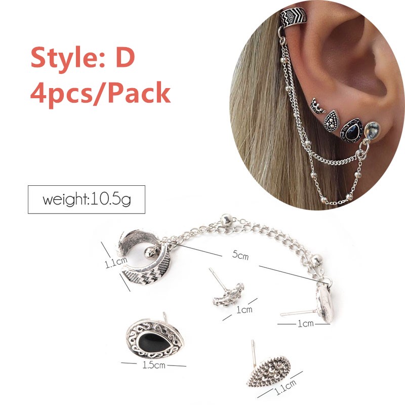 Bohemian Style Stud Earrings Set for Women Vintage Jewelry Ear Clips Chain-4