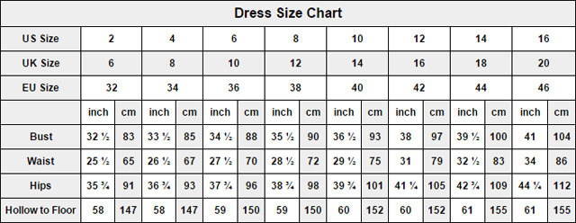 If you are not sure what's your correct size, we highly suggest you choose free custom size(bust, waist, hips and your height). We offer this service for free. Be careful, pls provide correct size, if you don't know how to measure, you can get someone professional to help you!