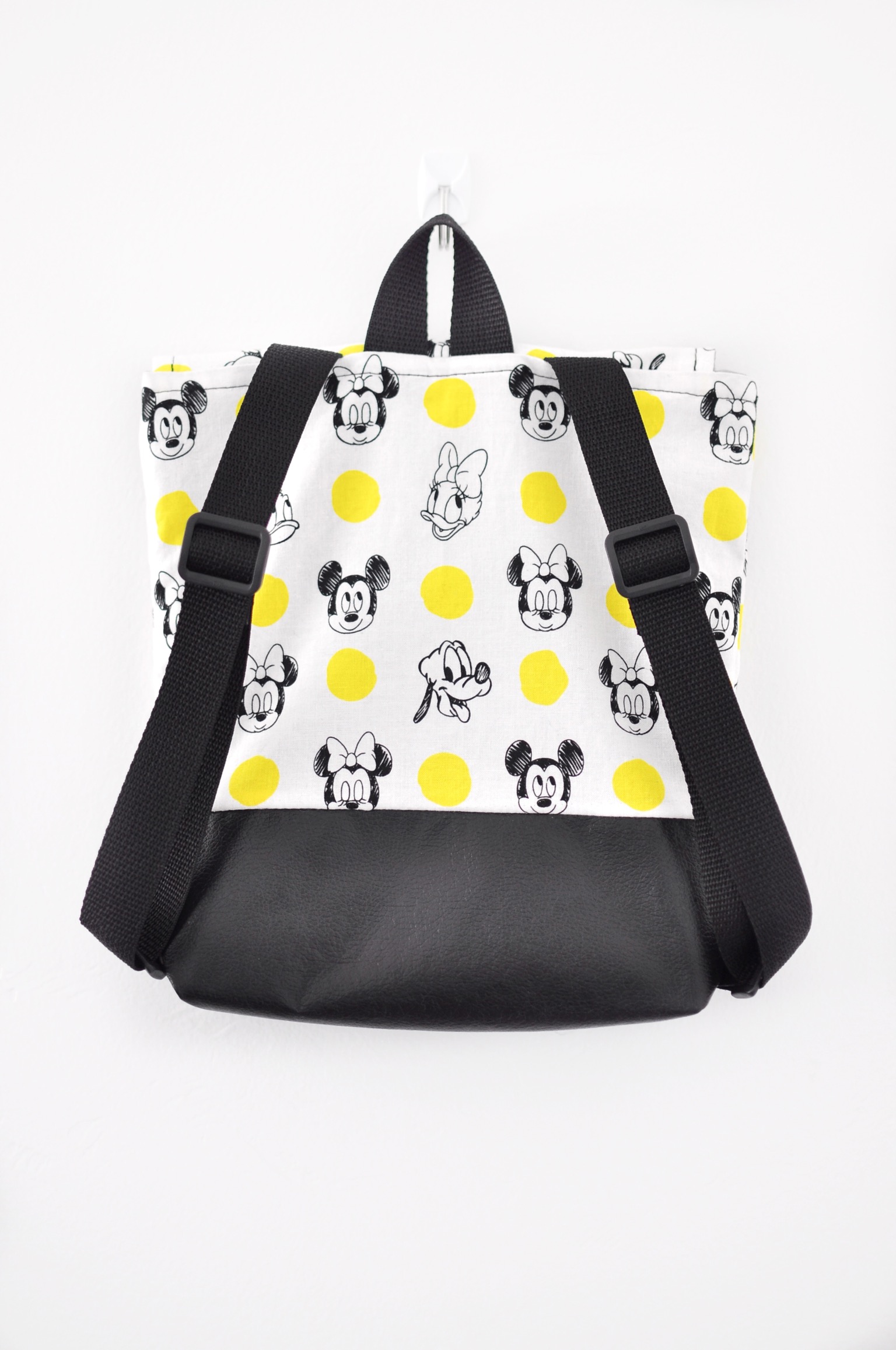 These modern child limited edition DISNEY bags are made of 100% cotton and Vegan Leather exterior and the interior is easy to wipe clean Ripstop Nylon. They are made to withstand any adventures your littles might take them on. The adjustable straps make it easy to tighten or loosen to fit your child perfectly and the magnetic snap button will give your child the independence he or she needs.