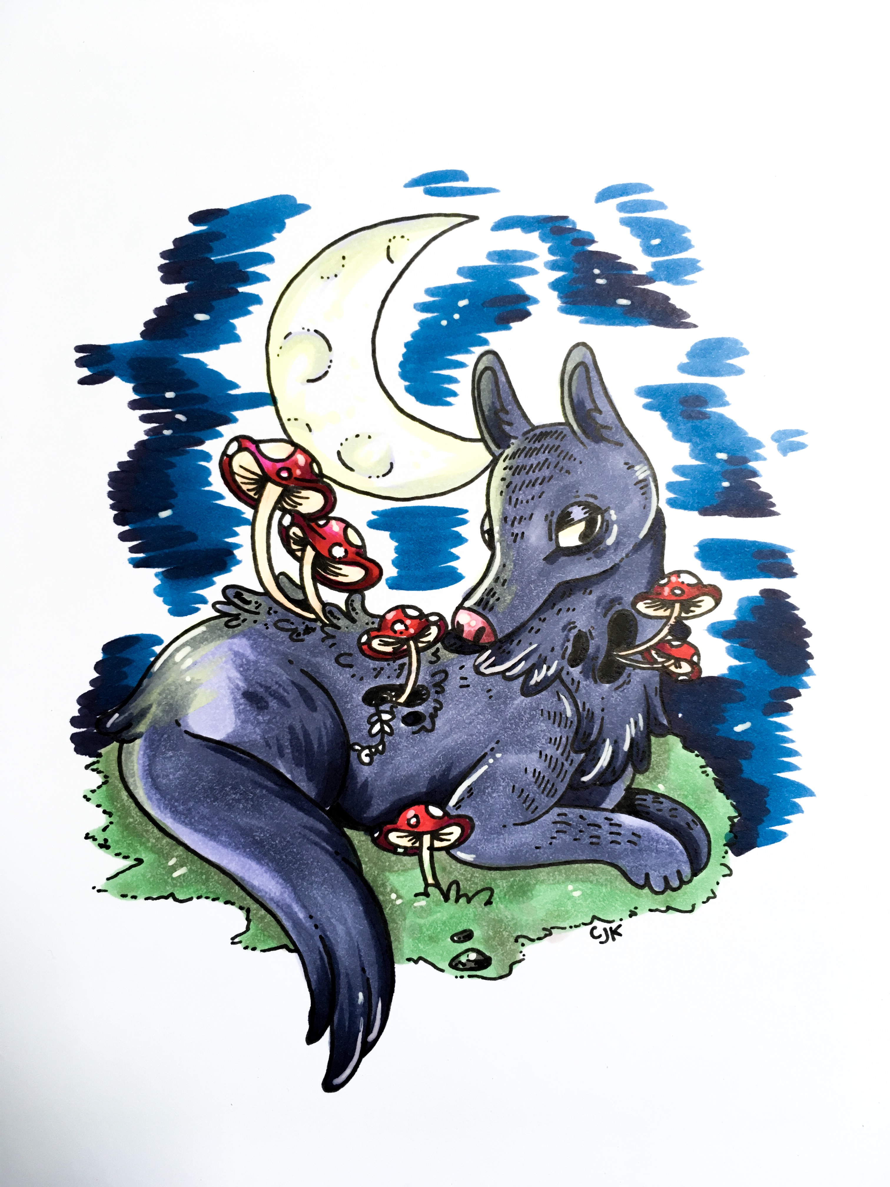 A sweet little wolf drawn in ink and Copic markers. Comes in a cute floral frame that can be hung on the wall or placed on a table for display. 5”x7”