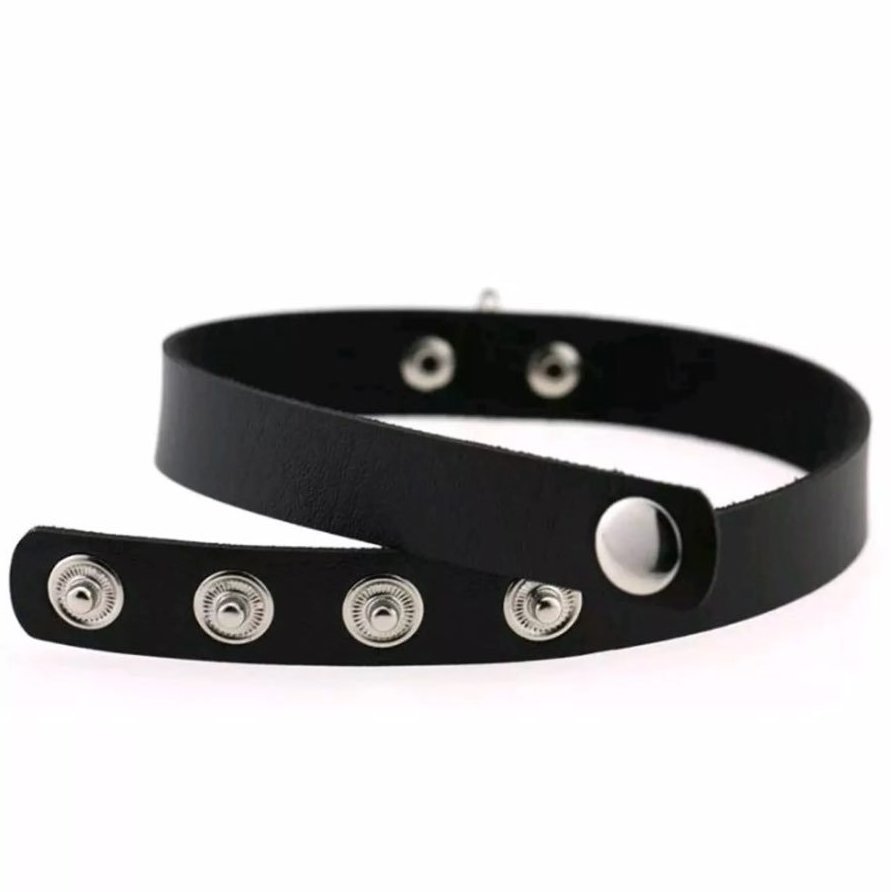 Stylish, cute, and eye-catching. This choker is made up of a vegan, non-leather strap, fastened with two lightweight O-Rings. Adjustable with four different snaps. Ships with protective plastic on rivets. Note: Rings are for display and wearing only.