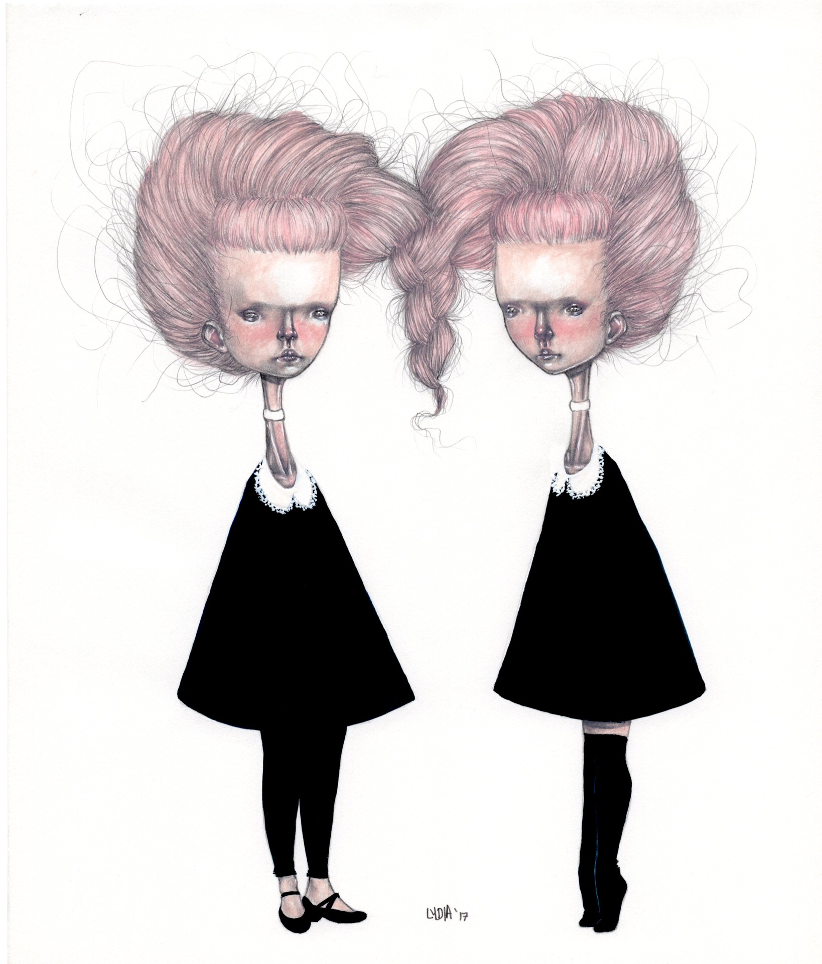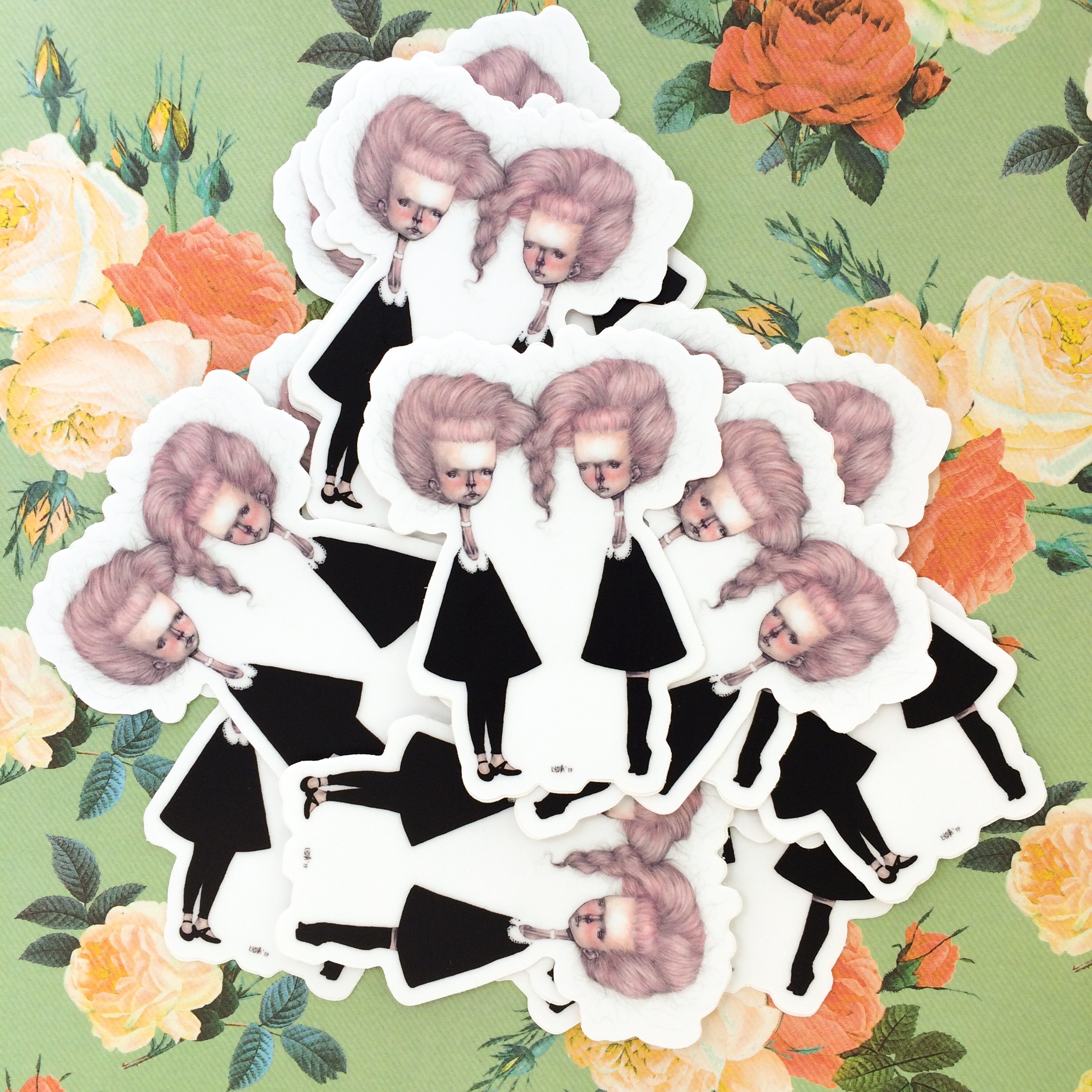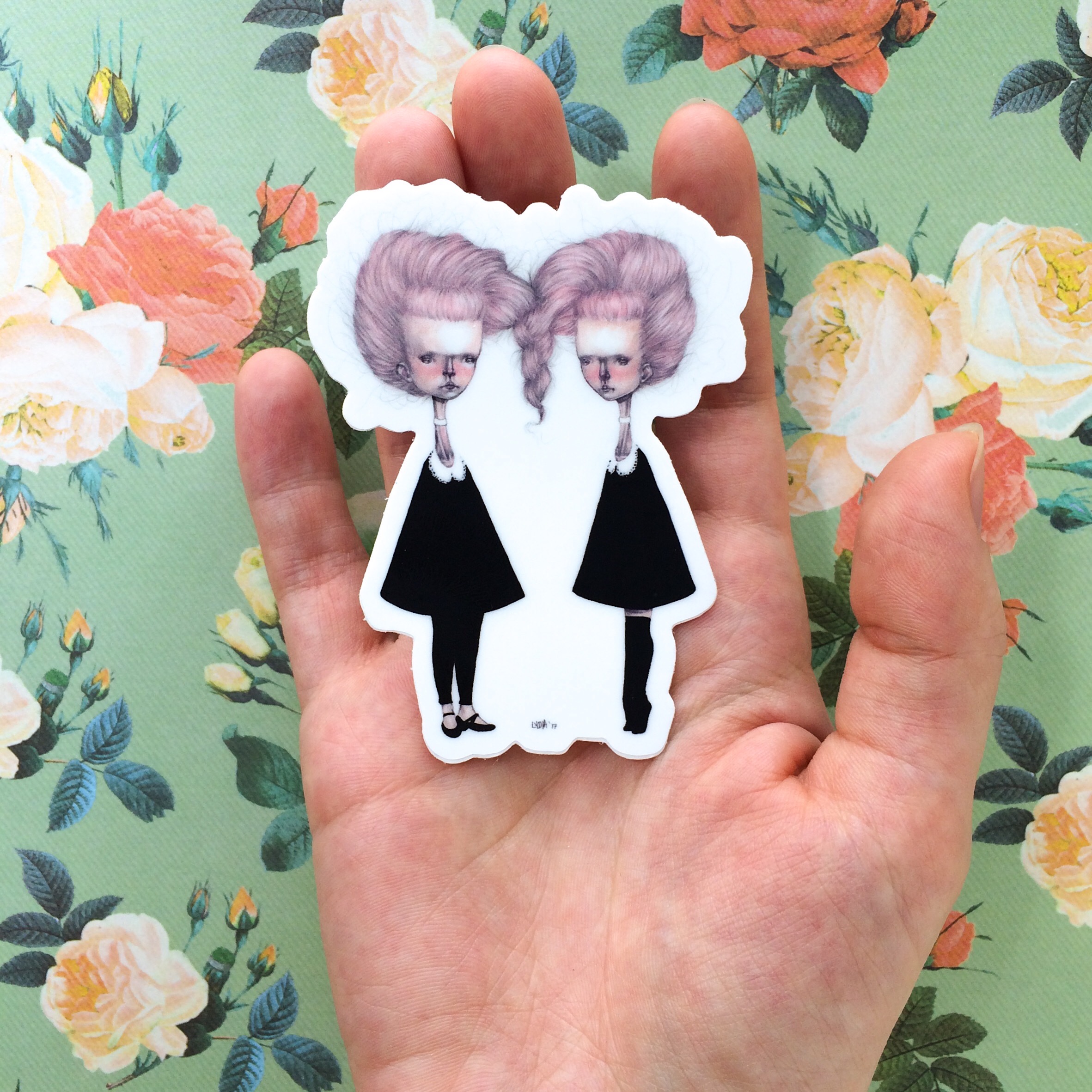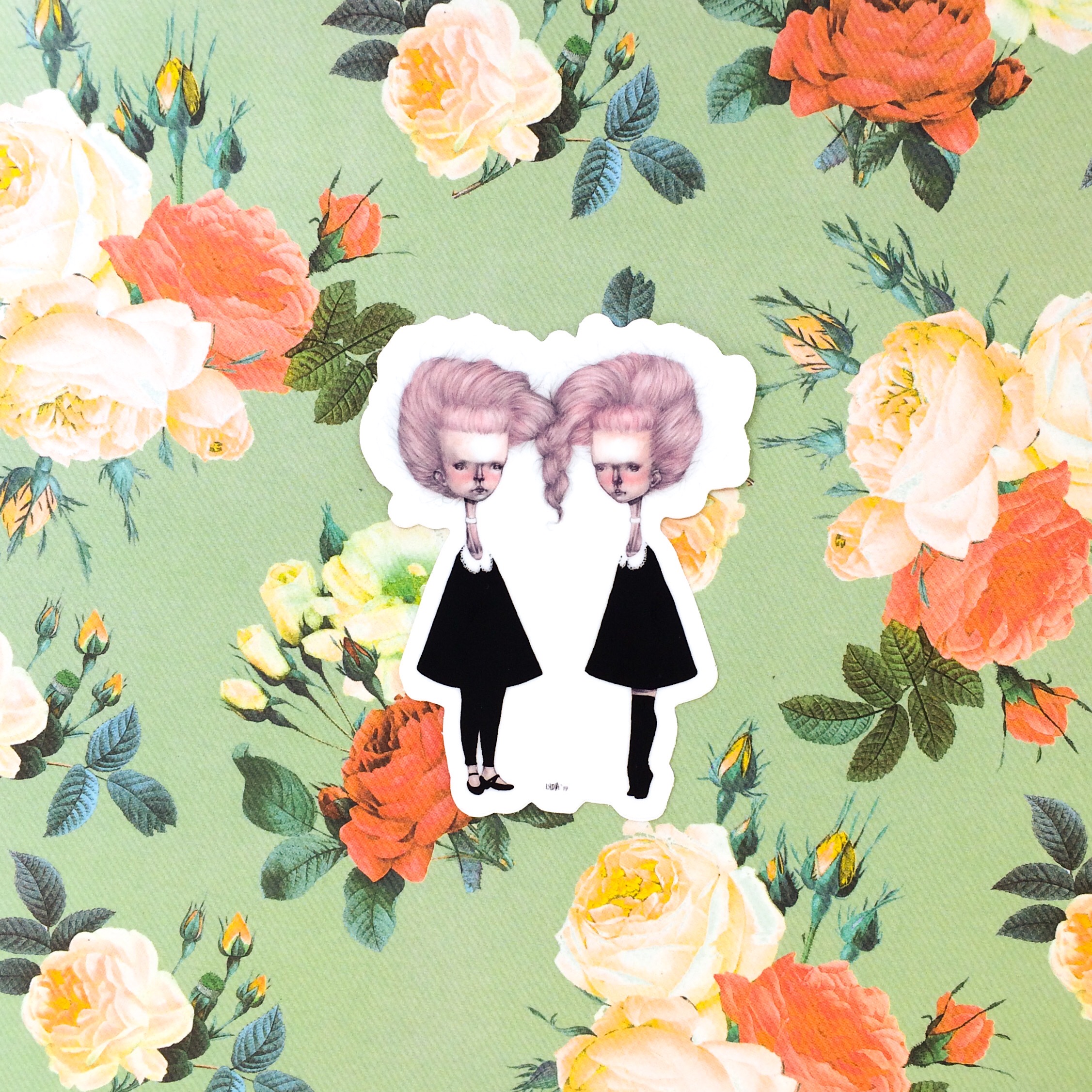 One 2.33” x 3” die cut #mabsdrawlloweenclub Creepy Twins vinyl sticker