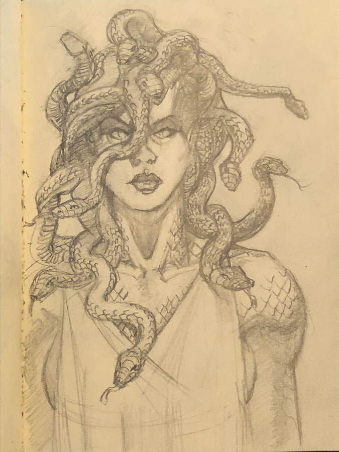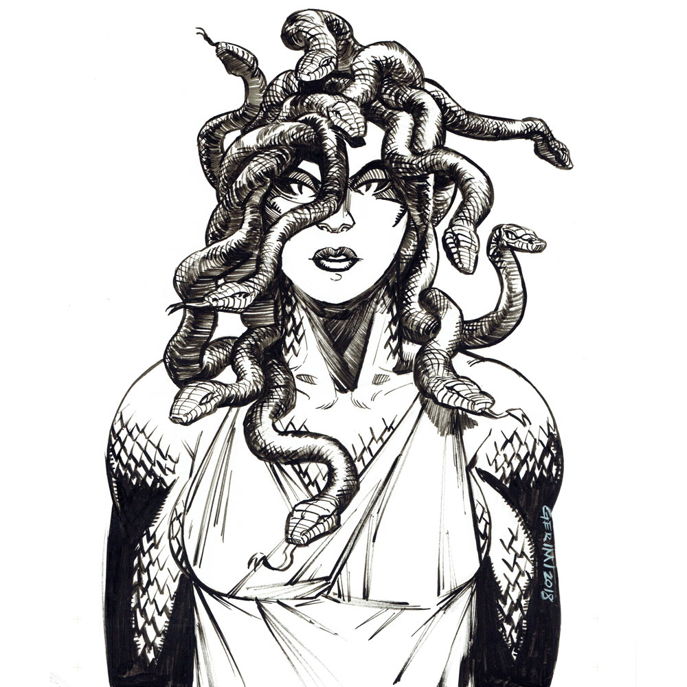 For this one, I just wanted to capture a soulful ink portrait of a Gorgon. I can and probably will do several explorations in this vein.