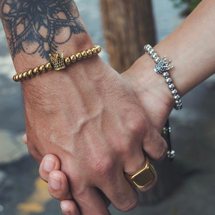GOLD BEAD CROWN BRACELET HIS AND HER BRACLET, DISTANCE BRACELET,COUPLE BRACELET
