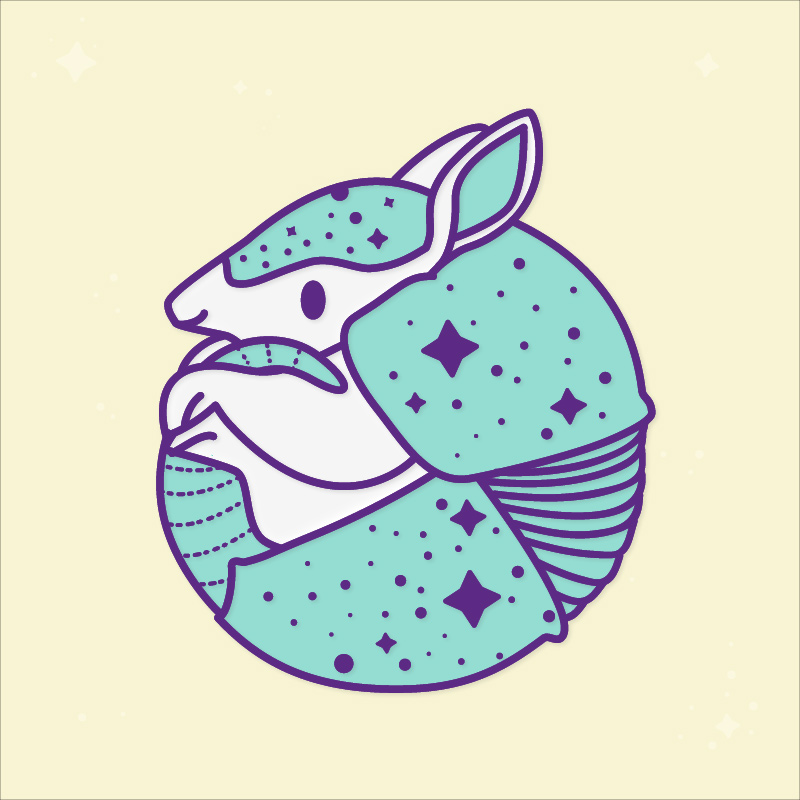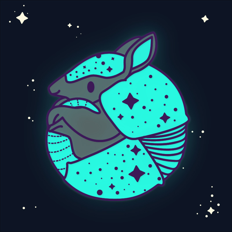 This pin celebrates the gorgeous night sky, the amazing armadillo, and cool glow-in-the-dark pin technology. Measures 1.5 x 1.7 inches Begins shipping October 5 - 10th!