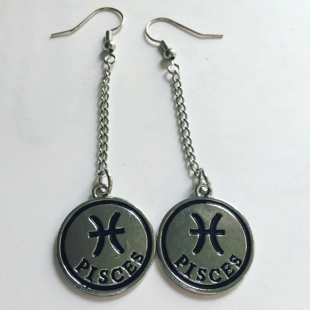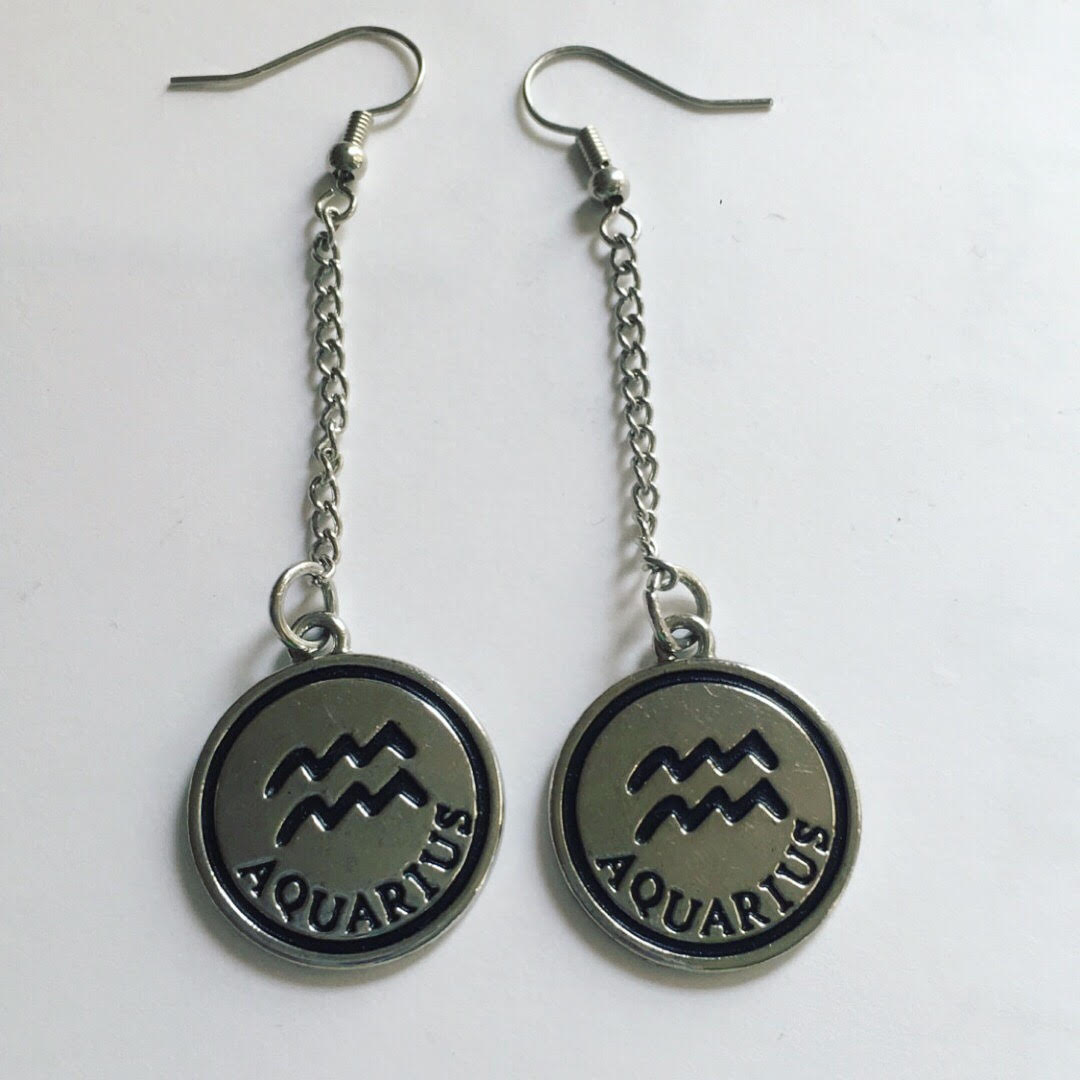 Silver astrology sign earrings. Just add which sign you would like in the notes at checkout! 2 inches long