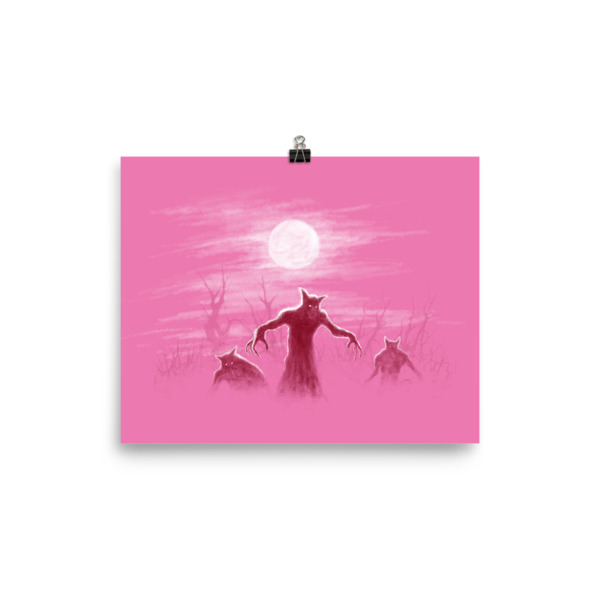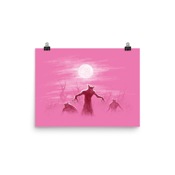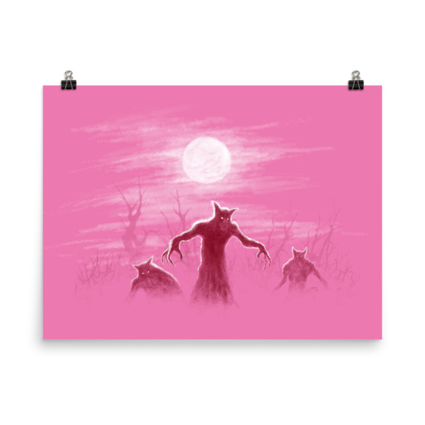Who doesn't love a good werewolf image?! This is a special pink version available for a limited time!. A statement in any room. These matte, museum-quality posters are printed on durable, archival paper.
