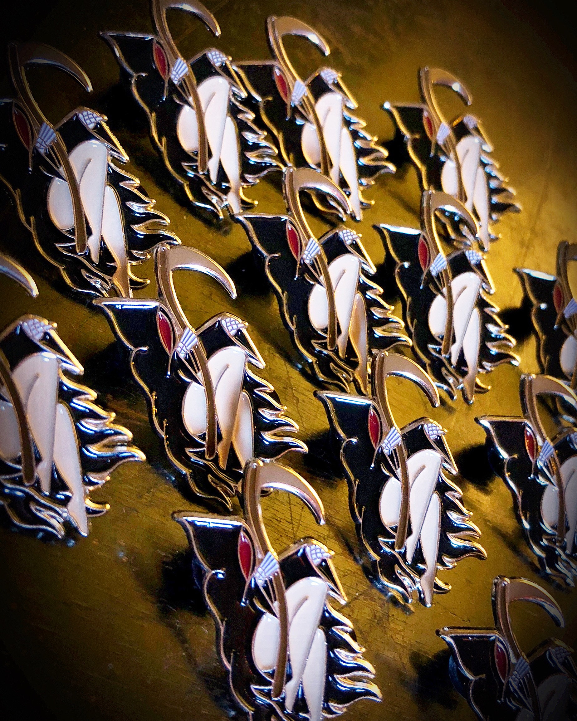Grim Reaper babe metal enamel pin with double rubber closures