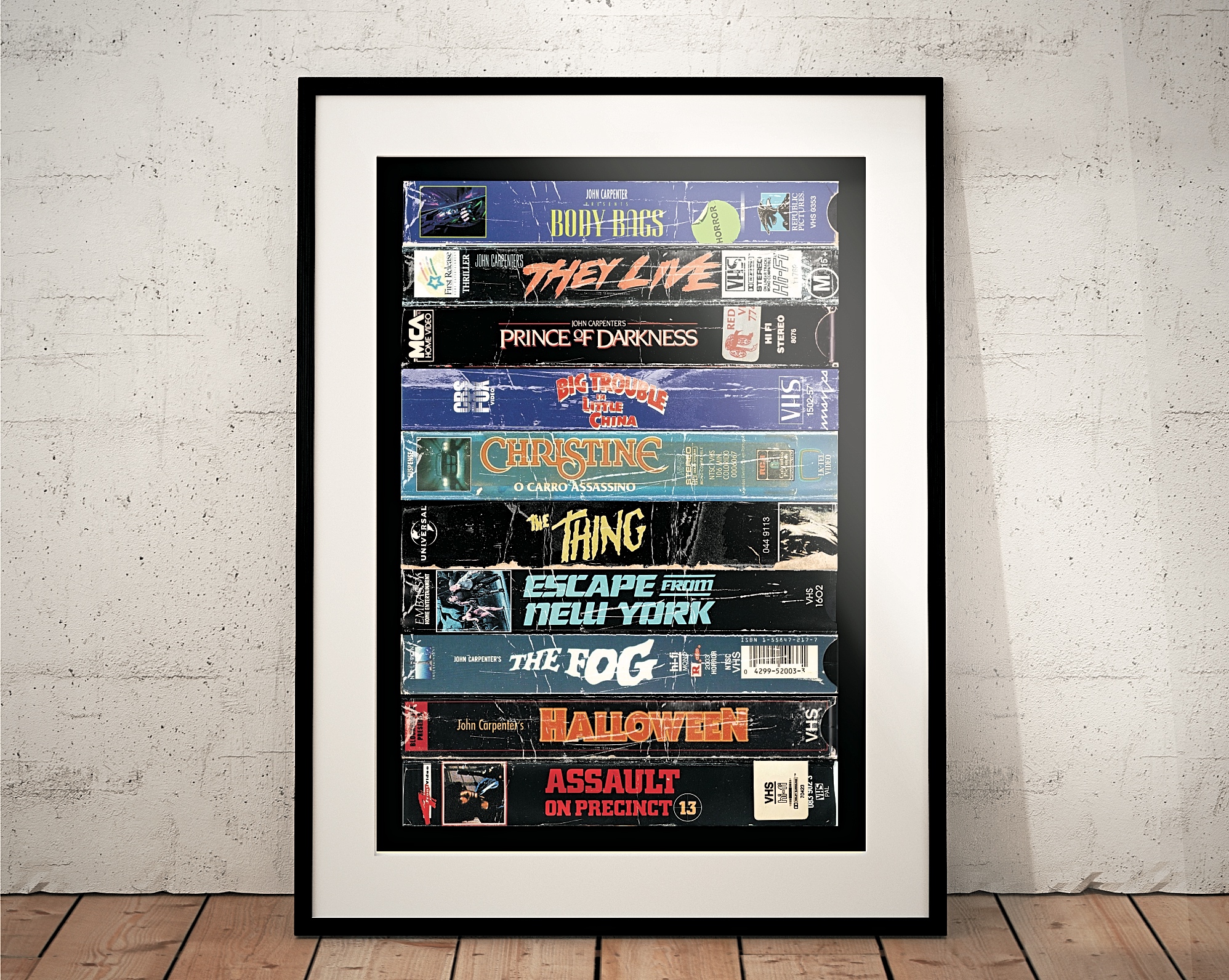 John Carpenter VHS Collection Print, Poster (They Live / The Thing / Escape from New York / Cult  / Horror)