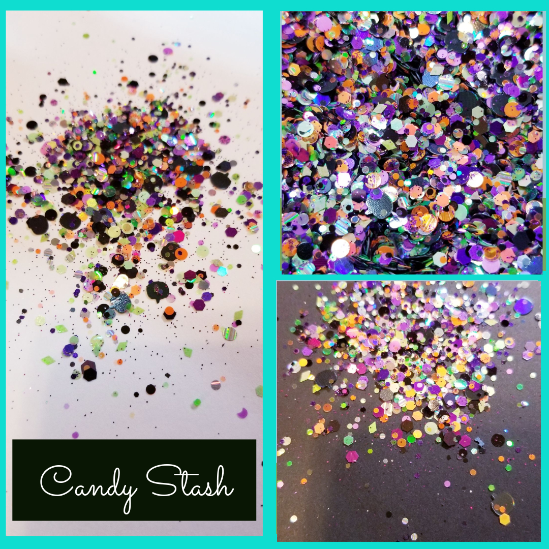 Purple, green, orange and black mixed dots & ball holo pumpkins with holographic silver accents perfect for Halloween. It's perfect for nail art, slime, crafts, tumblers and other DIYs. This mix looks beautiful encapsulated in hard gel or in resin or epoxy projects. It would look amazing in clear slime too! Quantity is 1.5 tsp